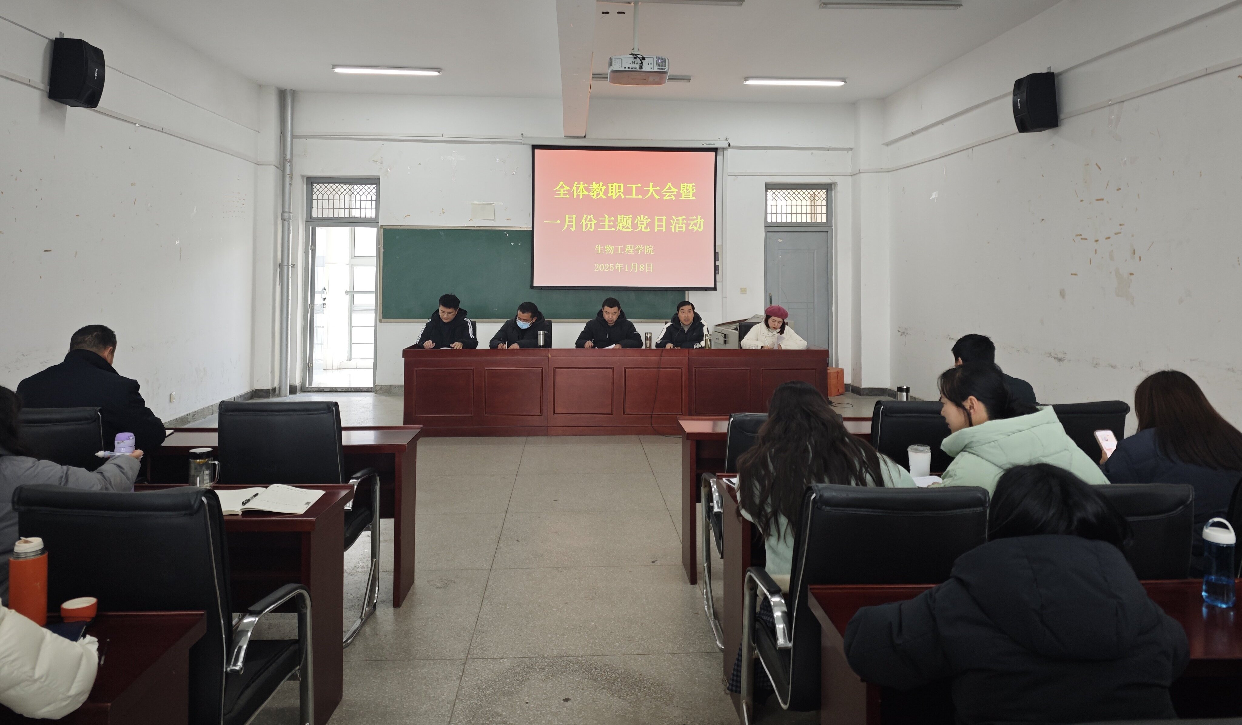 为巩固拓展学习贯彻习近平新时代中国特色社会主义思想主题教育成果,认真学习领会贯彻党的二十大和二十届三中全会精神,1月8日,AC米兰中文官方网站党总支在生化楼A305召开了全体教职工大会暨一月份主题党日活动,会议由该院党总支副书记(主持工作)慈龙保主持,全体教职工参加会议。