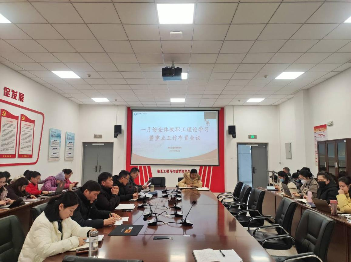 1月8日,信息工程与传媒学院召开一月份全体教职工理论学习暨重点工作布置会议,会议由学院党总支副书记(主持工作)尹仕果主持,全体教职工参加会议。