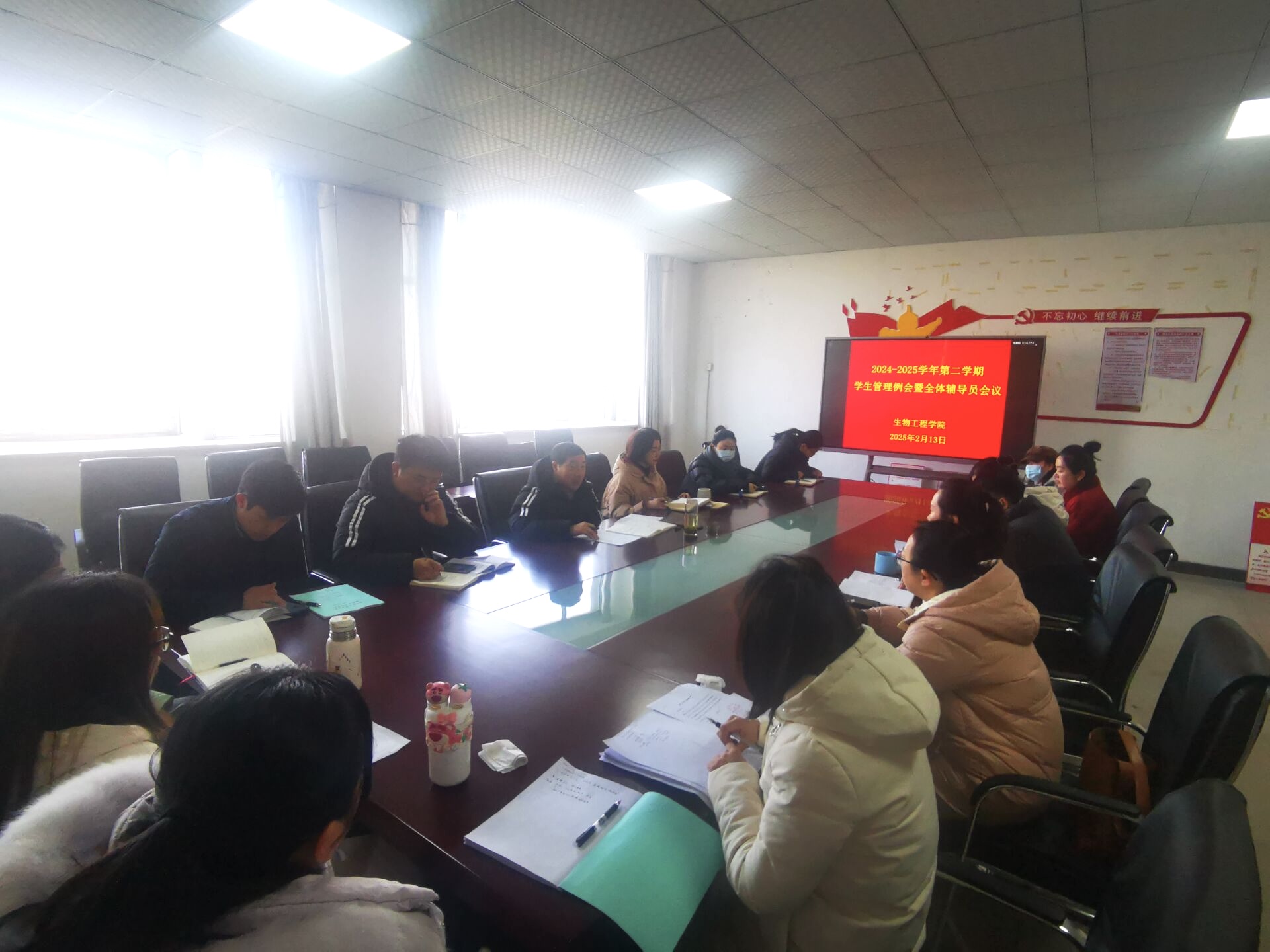 为确保新学期学生工作平稳有序开展,2月13日,AC米兰中文官方网站在党员活动室召开了学生管理例会暨全体辅导员会议。该院党总支副书记(主持工作)慈龙保、副书记周婷、全体学管老师及专兼职辅导员参加了此次会议。