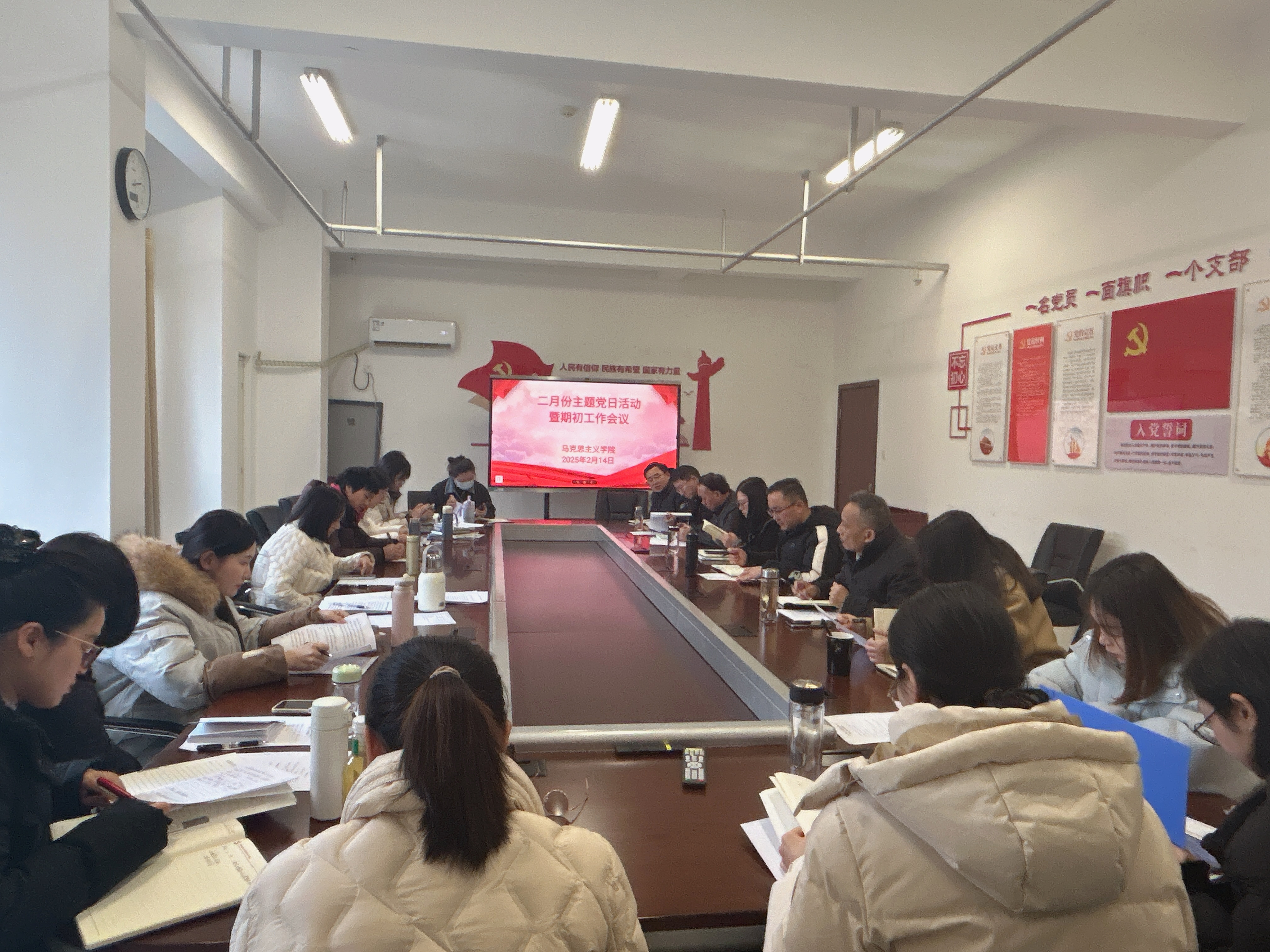 2月14日下午,马克思主义学院召开二月份主题党日活动暨期初工作会议,会议聚焦学校“冲高升本”建设目标,全面部署新学期各项工作。该院党支部书记王文飞、院长胡心红和全体党员、教职工参加了会议。会议由王文飞主持。