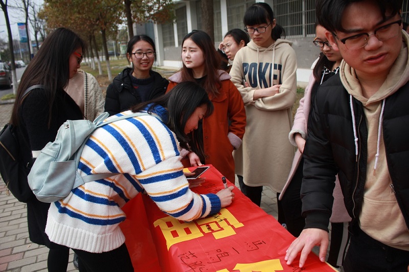 为更好地宣传志愿服务精神,吸引更多的学生参与到承诺签名活动中来,护理(医)学院学生会积极利用微信公众号、班级QQ群等多种方式进行广泛宣传。活动当天,志愿者在教学D楼门口拉起横幅,让同学们依次签下自己的姓名,并且热情地向同学们宣传“雷锋月”精神,以此号召更多的学生积极参与到学习雷锋精神的行列中来,奉献出自己的一份力,更好地服务社会。来往的同学皆积极参与,踊跃签名。