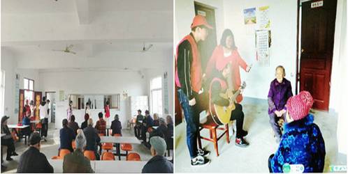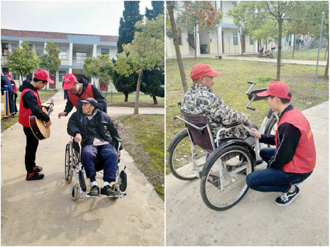 刚到敬老院,同学们便立即行动起来,为老人们穿衣服,整理房间,量血压、测血糖,给老人们剪指甲、捶背,推着轮椅陪老人们散心,听老人讲故事。经贸旅游学院文艺团还进行文艺表演,老人们乐不可支,大家其乐融融。在和敬老院祝院长的交流中,得知一些老人因为身体原因,常年卧床,志愿者们便纷纷来到这些老人的床前,在宿舍里为他们表演节目,陪他们聊天。活动中,志愿者们还为老人们带去了慰问品,献上了自己的一份爱心。