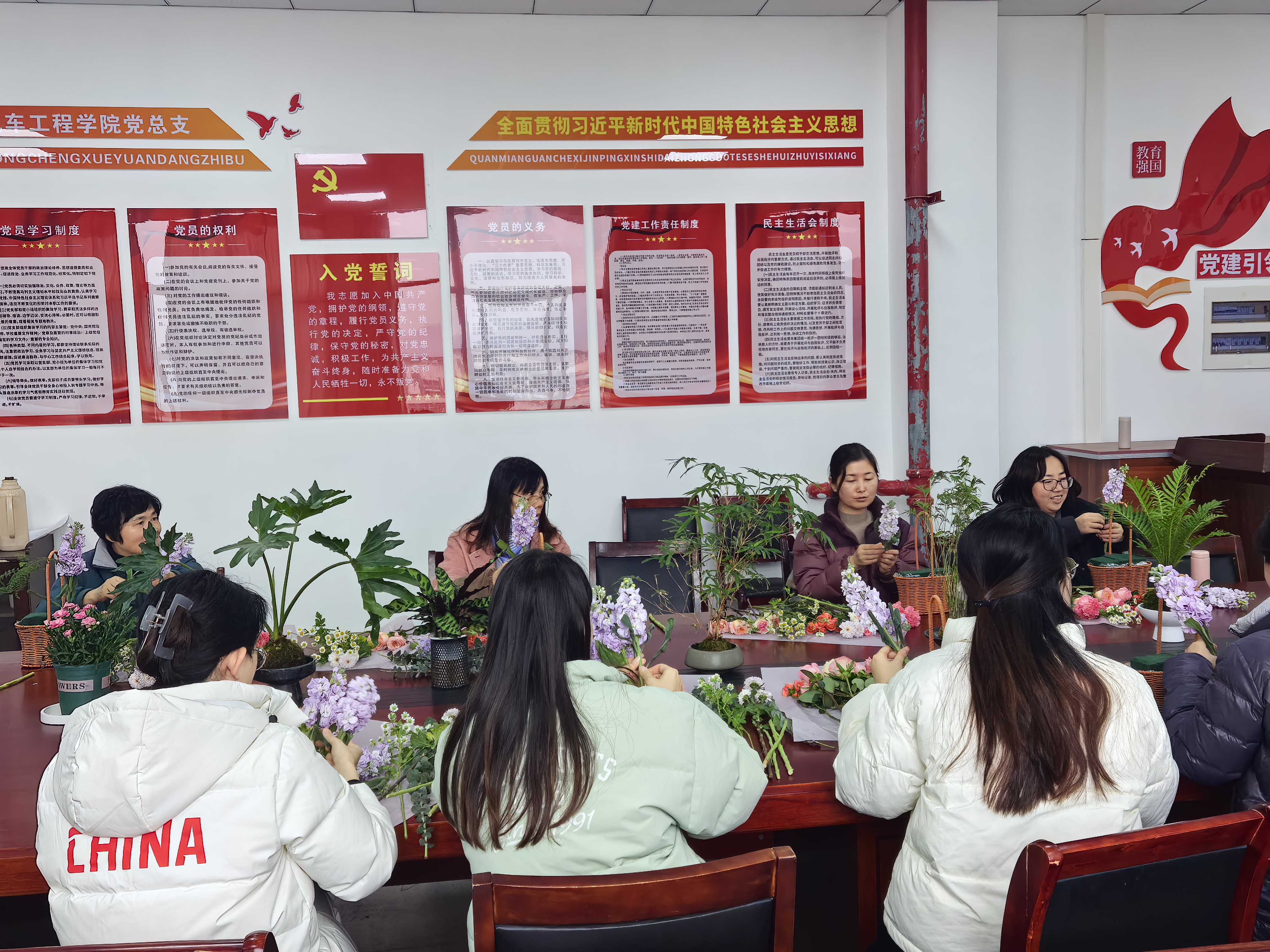 为丰富汽车工程学院女教职工的精神文化生活,展现女性优雅风采,同时增进同事间的交流与情谊,3月5号下午两点半,汽车工程学院组织开展了三八国际劳动妇女节插花活动,现场花香四溢,气氛温馨而热烈。