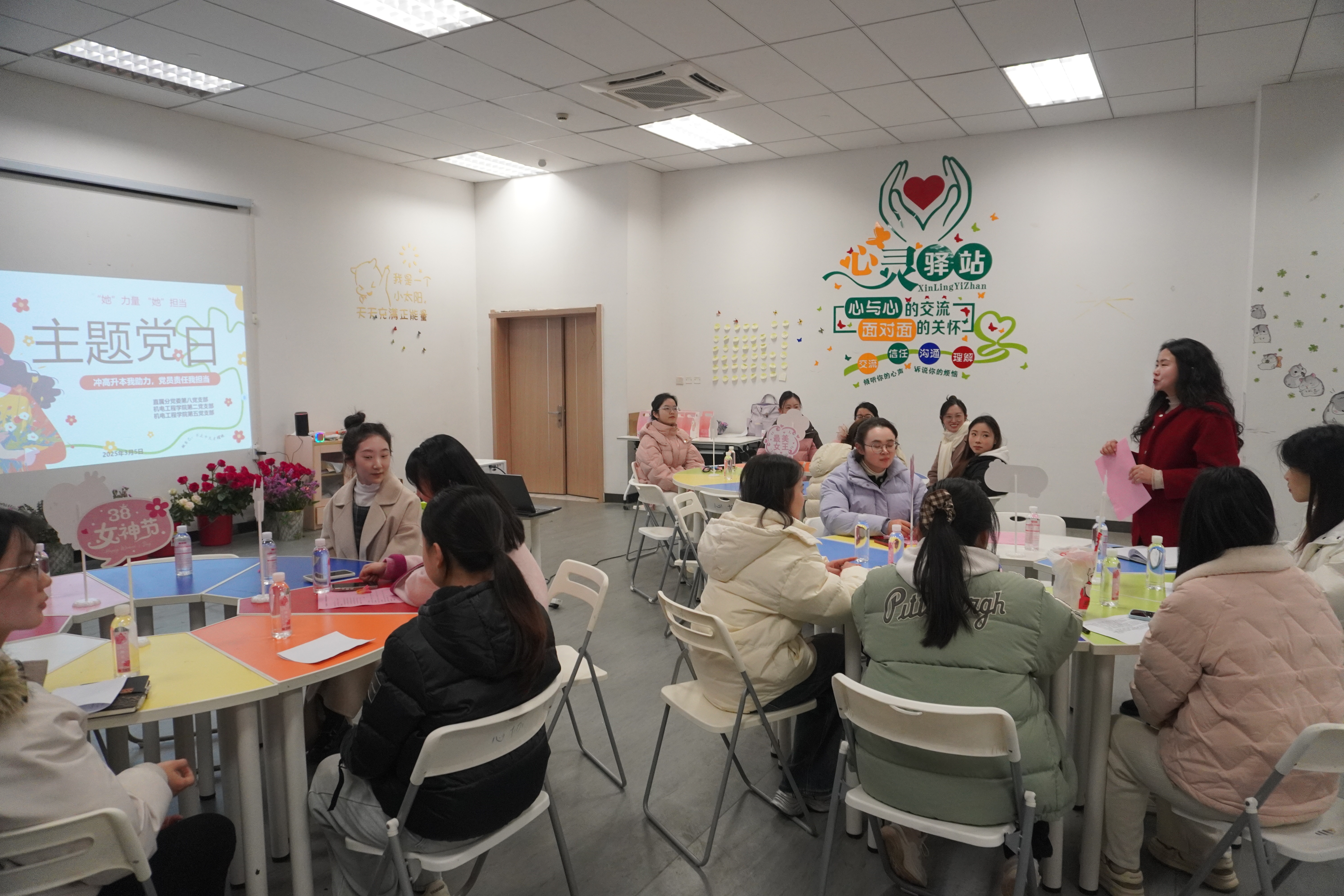 三月灼灼,春水漾漾。为聚力推进学校“冲高升本”发展目标,促进学生社区党建工作协同共建,3月5日下午,直属分党委第八党支部、机电工程学院第二党支部、第五党支部于大学生活动中心联合开展“她力量·她担当”主题党日活动,迎接即将到来的“三八”国际妇女节。来自三个党支部的女性党员教师代表以及机电工程学院女生党员团员、入党积极分子和学生干部代表参加,活动由机电工程学院专职组织员雷宁主持。