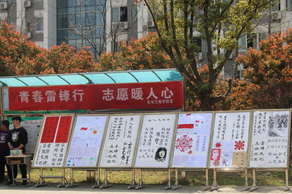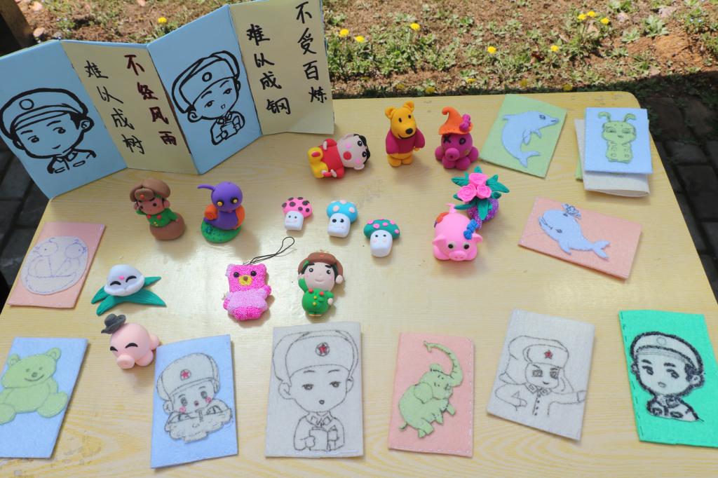 三月末的正午,天气炎热,烈日高挂,学生会志愿者辛勤布展,将七个大展架从生化楼搬至二食堂门前广场,只为了能将我院最好的一面展示给大家。学生做的轻黏土手工作品和缝制的卡套全部免费送给观展学生。