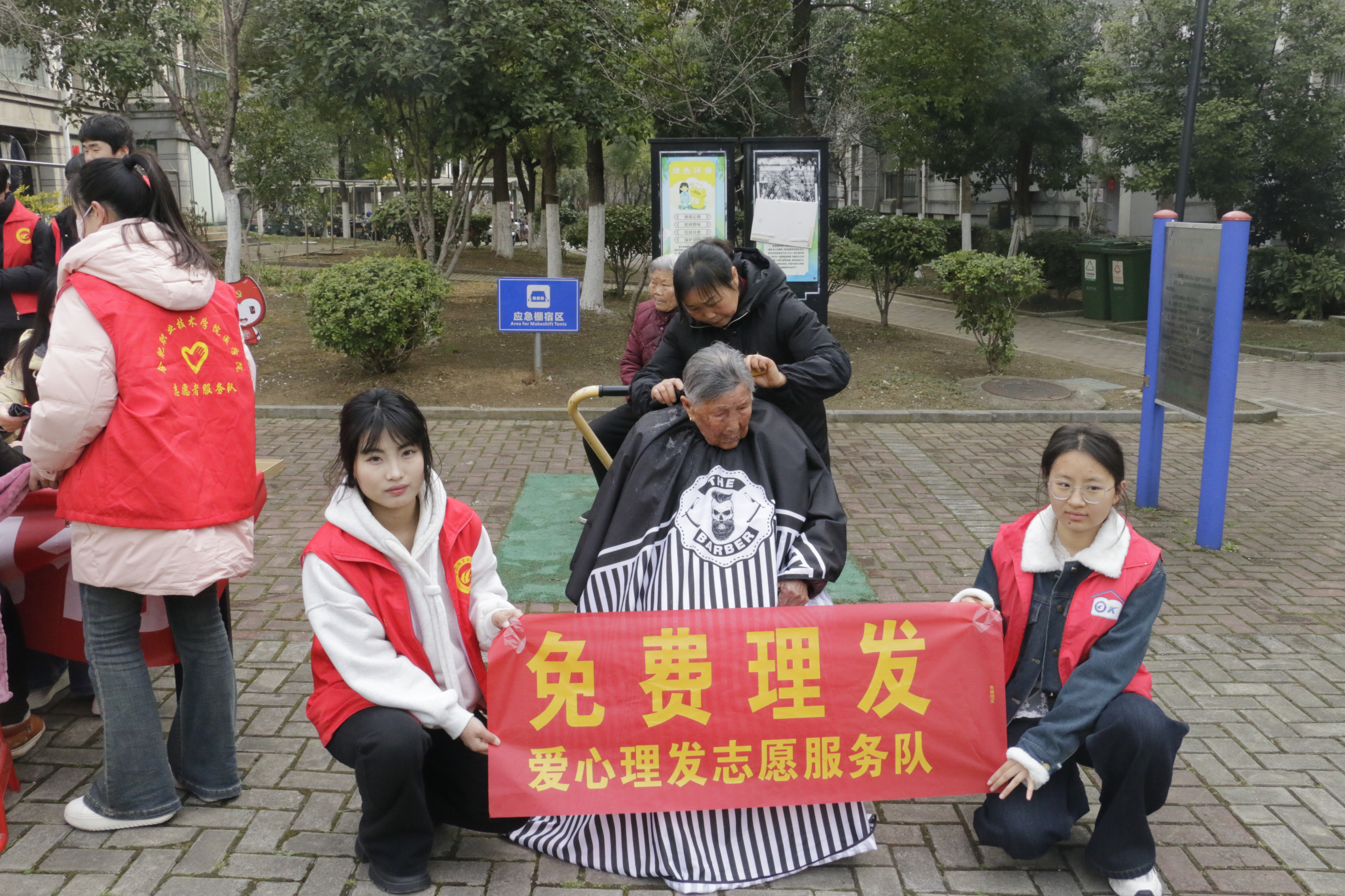 活动当天,医学院第六、第七、第八党支部的教师党员们带领学生入党积极分子和志愿者团队,早早来到西山社区。大家迅速搭建起血压检测、健康咨询、免费理发等多个服务点位,有条不紊地投入工作。在血压检测区,居民们有序排队,学生志愿者们耐心细致地为每一位居民测量血压,并认真记录数据。志愿者们还向居民发放健康宣传单,普及肺结核、高血压、脂肪肝、支气管哮喘等常见疾病的防治知识。面对居民的健康咨询,医学生们耐心倾听,结合个人实际,提供专业、个性化的防治建议,并围绕科学用药、膳食调理、运动保健等内容进行科普,引导居民树立“早预防、早干预”的健康理念。考虑到部分老年人行动不便,志愿者们还主动上门提供服务,将温暖送到家。“量血压、问病情,还教我们怎么吃得健康,真是太感谢了!”一位参与义诊的孙阿姨高兴地说。