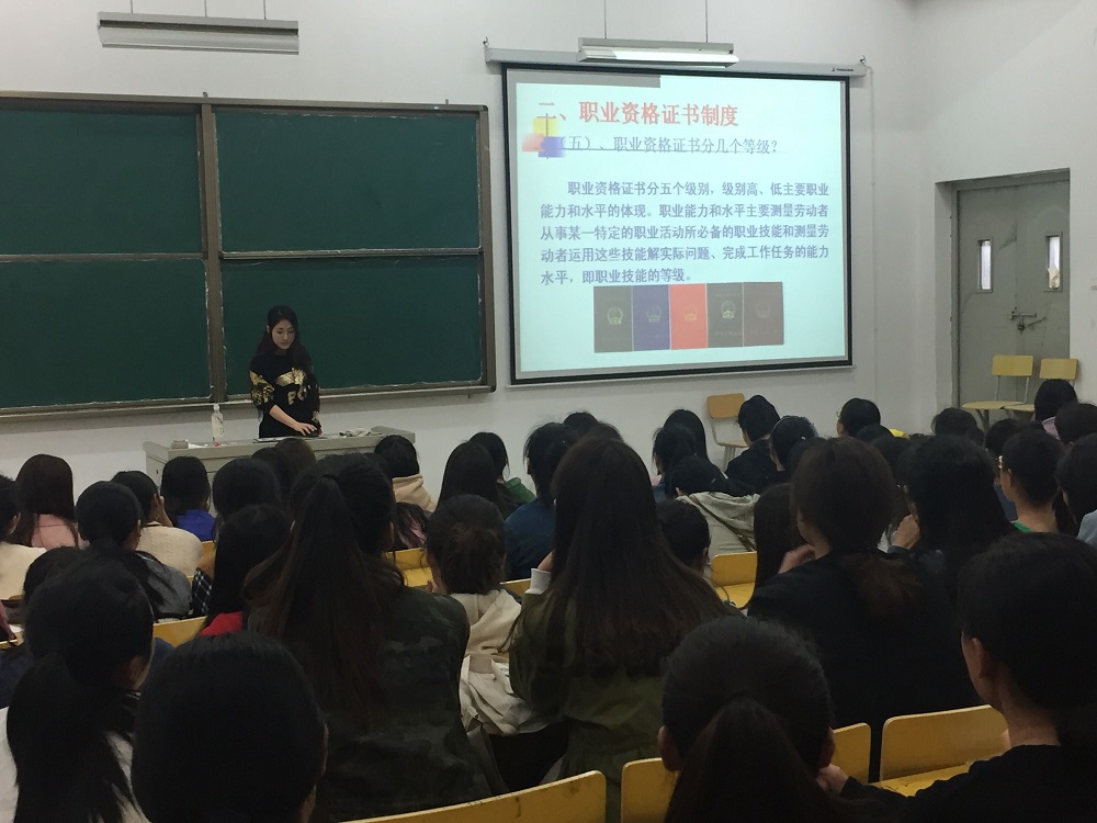 会上,陈雁容老师介绍了技能鉴定的相关问题,结合多个案例阐述了“双证制”教育和职业资格证书对学生职业发展的重大意义,号召同学们根据所学专业学习进展、自身的职业理想和学校对职业技能鉴定的安排努力,学习专业知识和技能,早考证、多考证,并力争考出理想的成绩,为增强高质量就业、择业竞争能力奠定坚实基础。同时陈老师也表示,如果在申请流程、考试培训过程中有遇到困难,可以随时找老师解疑答惑。最后,陈老师对本次动员会做简单总结,鼓励备考的同学,要相信自己,端正学习态度,做好备考前的理论复习和技能训练,争取在考试中获得好的成绩。