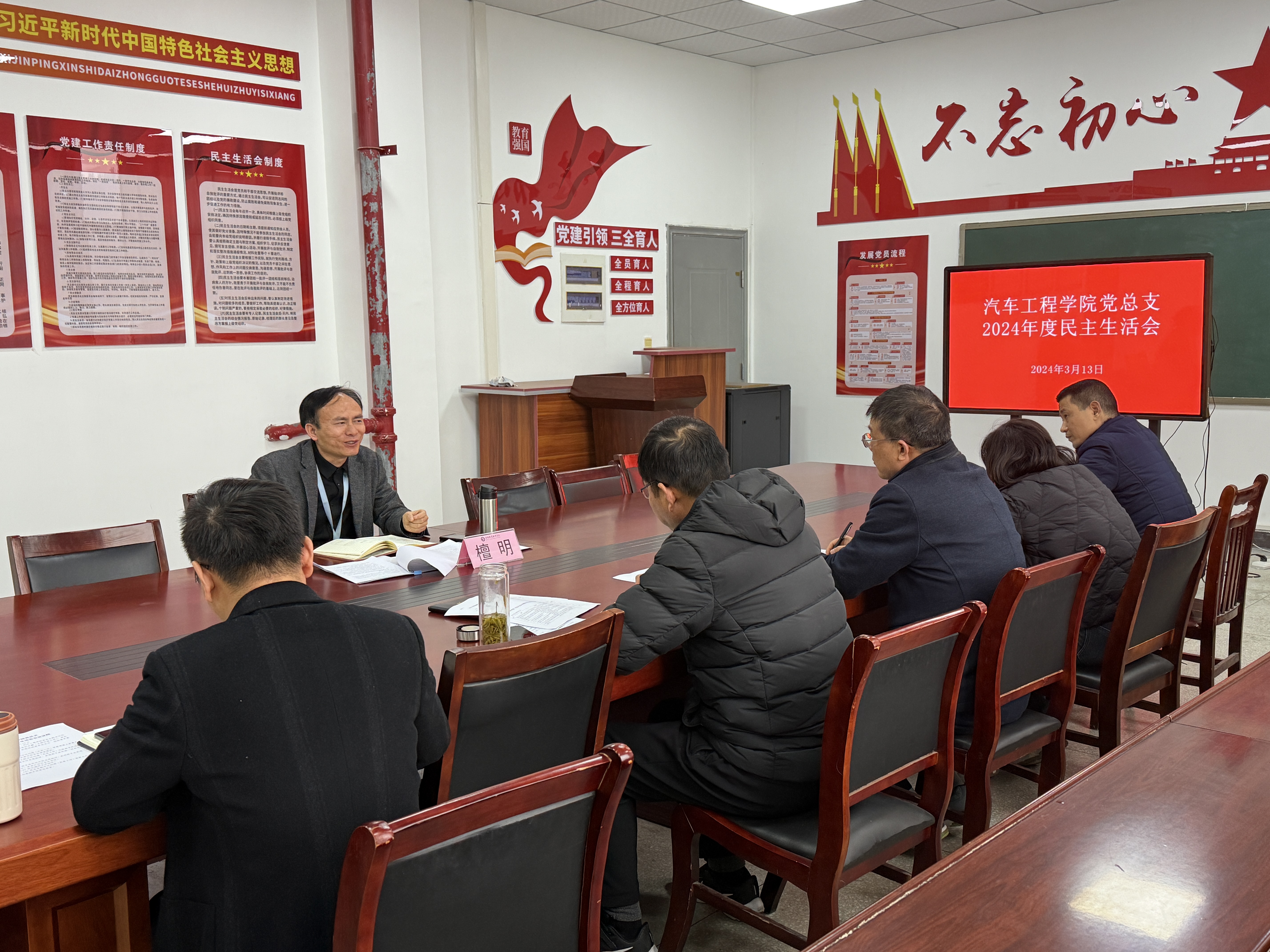 为认真学习贯彻习近平新时代中国特色社会主义思想和党的二十届三中全会精神,进一步严肃党内政治生活,2025年3月13日下午,汽车工程学院党总支在汽车楼405党员活动日召开2024年度民主生活会,校党委副书记、校长檀明到会指导,汽车工程学院党总支委员出席会议,会议由党总支副书记刘靖(负责工作)主持。