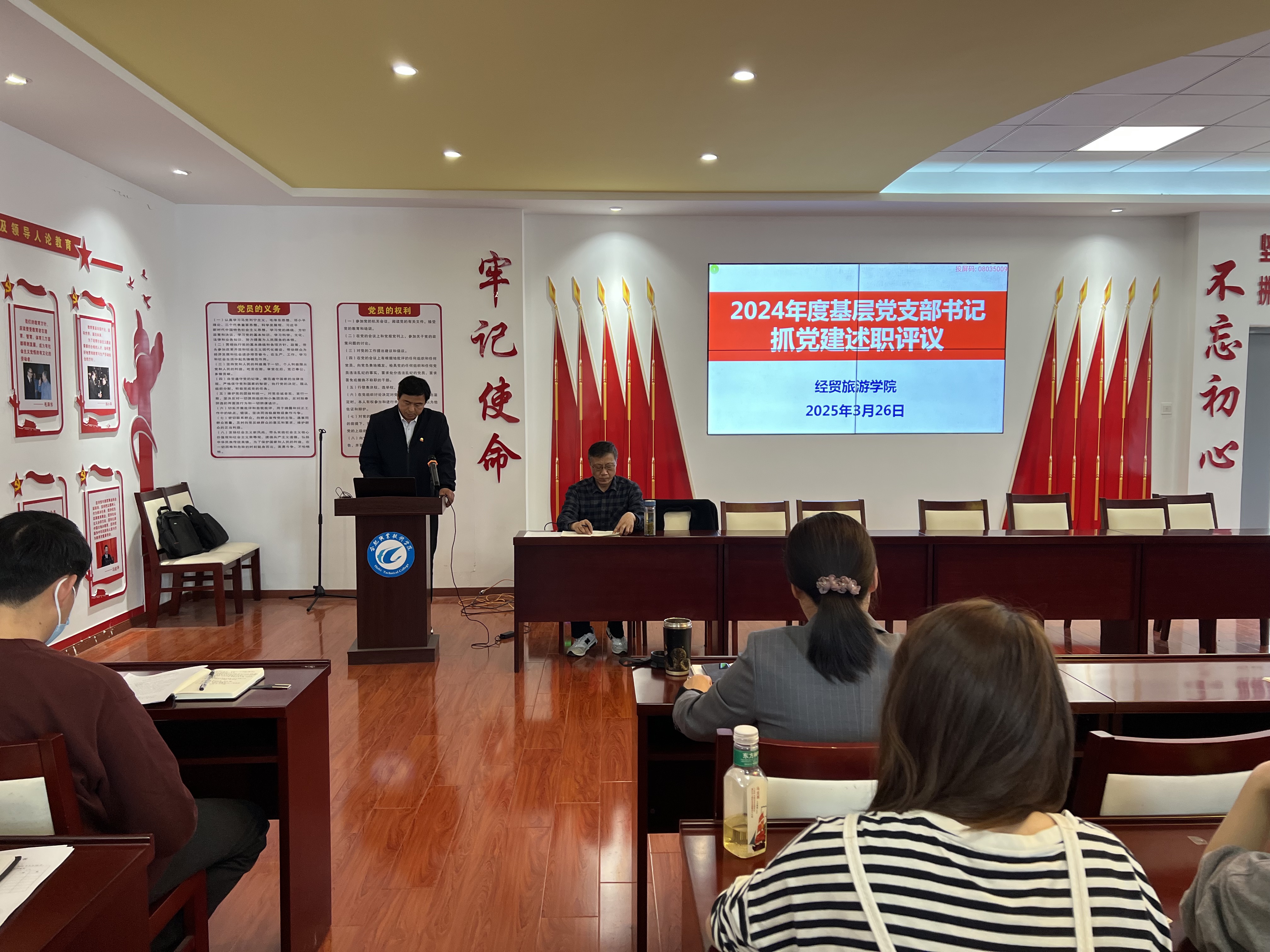 为贯彻落实学校党委工作部署,深入推动基层党组织党建工作高质量发展,3月27日,经贸旅游学院党总支召开2024年度党支部书记抓党建述职评议考核会。该院党政班子成员、各党支部书记、部分民主党派、党员、群众代表参加会议,会议由该院党总支书记梅亚松主持。
