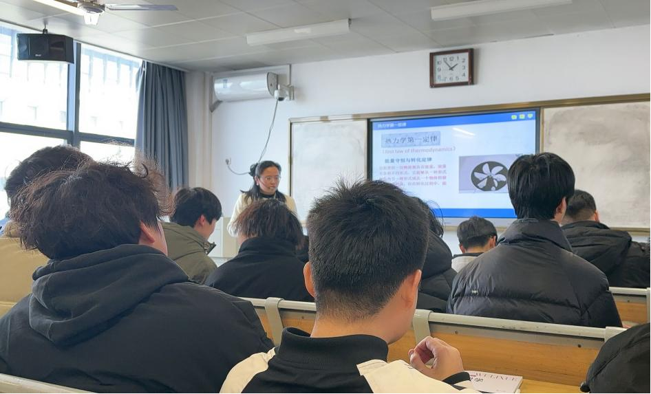 两位《物理学》兼职教师储开念老师和邱茂琴博士的公开课分别于3月7日和19日进行。储老师围绕热力学平衡相关知识,依次介绍热力学的相关概念、能量交换的两种形式“热”和“功”、体积功的计算方法以及热力学第一定律等。储老师结合生活中的具体实例,让学生们对能量守恒有了更深刻地理解,师生互动协调,课堂气氛融洽,教学效果良好。