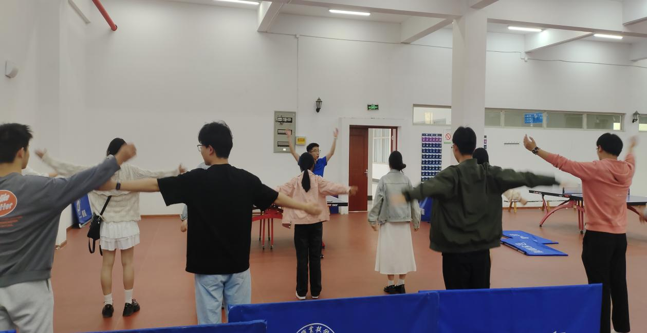在讲解过程中,偶杰同学更是强调了运动前热身和运动后拉伸的重要性,将其比作运动过程中的“隐形保护罩”。他亲自下场示范,一系列简单易学的热身和拉伸动作犹如灵动的舞蹈,流畅而规范。同学们纷纷紧跟其后,认真模仿,现场仿佛形成了一股积极学习健康运动技能的热潮。此外,面对同学们提出的运动损伤预防和处理相关问题,偶杰同学凭借扎实的专业知识,耐心且精准地给出专业建议与指导意见。