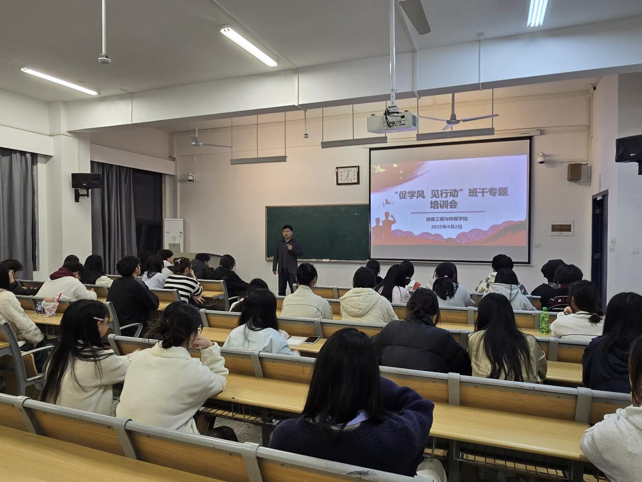 为进一步加强学风建设,营造积极向上、严谨认真的学习氛围,充分发挥学生干部在学风建设中的模范带头作用,信息工程与传媒学院学院于4月2日召开了“促学风,见行动”班干专题培训会。本次培训会由学院党总支副书记(主持工作)尹仕果主讲,在校班级班长和团支书等学生骨干积极参与了此次培训。