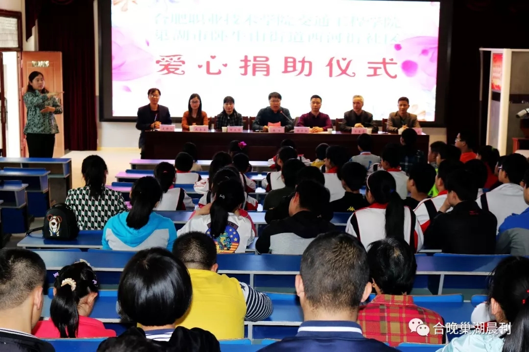 4月18日,AC米兰中文官方网站交通工程学院和卧牛山街道西河街社区以及西河街社区组织联合会在巢湖市特殊教育学校举行了爱心捐助仪式。