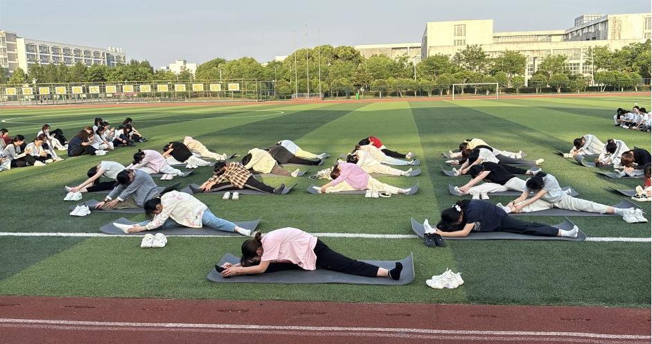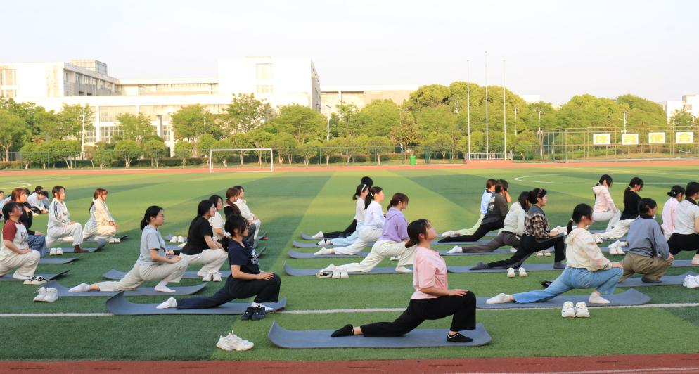 下午五时活动在舒缓的音乐中开始,社团成员首先进行基础的热身运动,再逐一展示瑜伽体式,如:“下犬式”“树式”“蛇式”等,最后以“拜日十二式”完成全部展示。全体成员动作整齐划一、动静结合、衔接有序,彰显出瑜伽的柔韧和力量之美,更展现出合职学子们的青春活力和健康体魄。