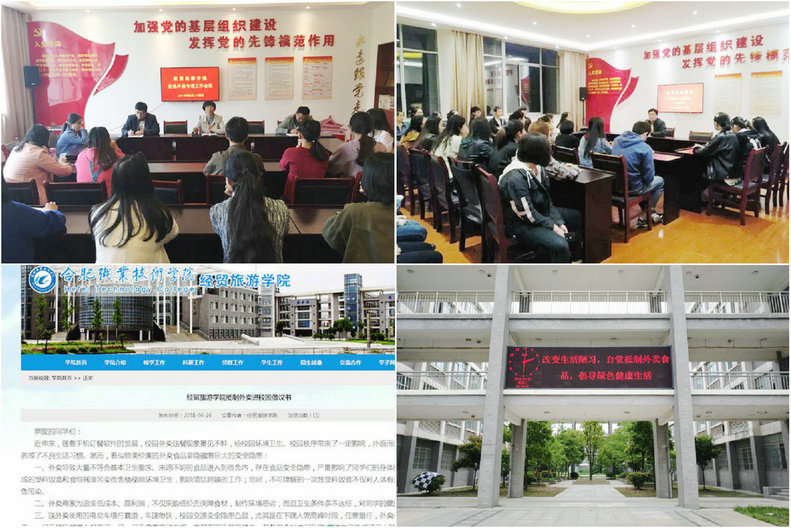 为积极响应学校拒绝外卖进校园专项治理活动,4月24日下午,经贸旅游学院召开拒绝外卖专项工作会议,全体在校班级辅导员和各班班长参加了本次会议,会议由该院党总支书记王秀珍主持。