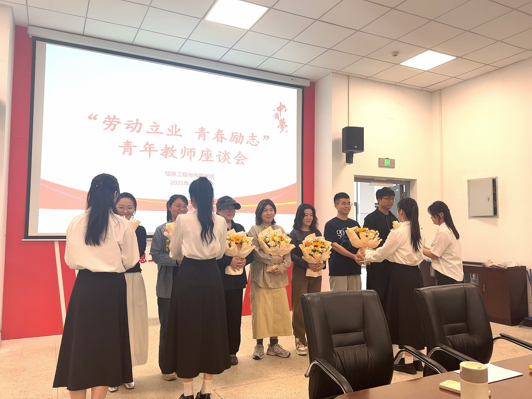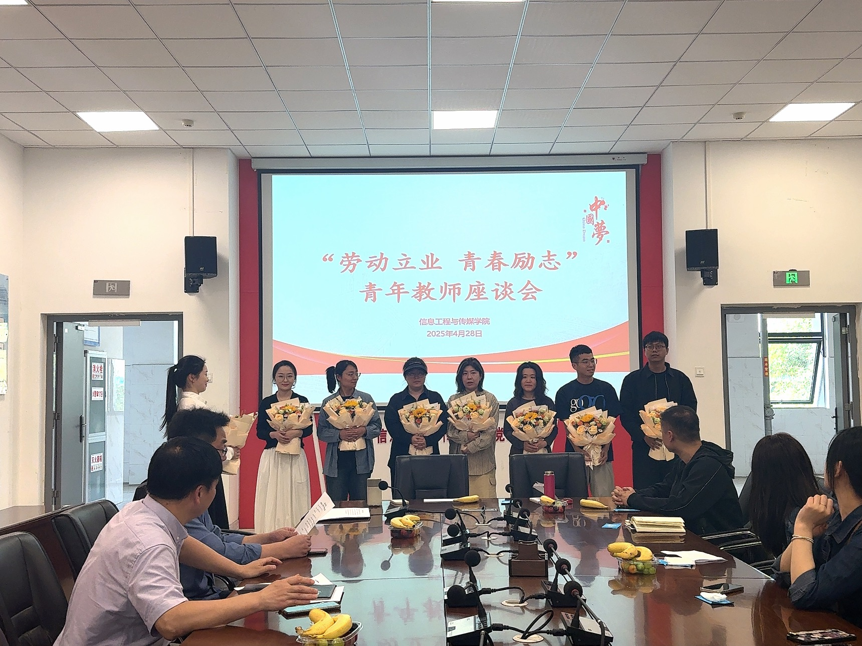 为迎接五一国际劳动节和五四青年节,鼓励青年教师励志青春,尊崇劳动,为该院和学校发展建功立业,4月28日下午,信息工程与传媒学院召开“劳动立业 青春励志”青年教师座谈会,该院领导班子成员和35岁以下青年教师参会。