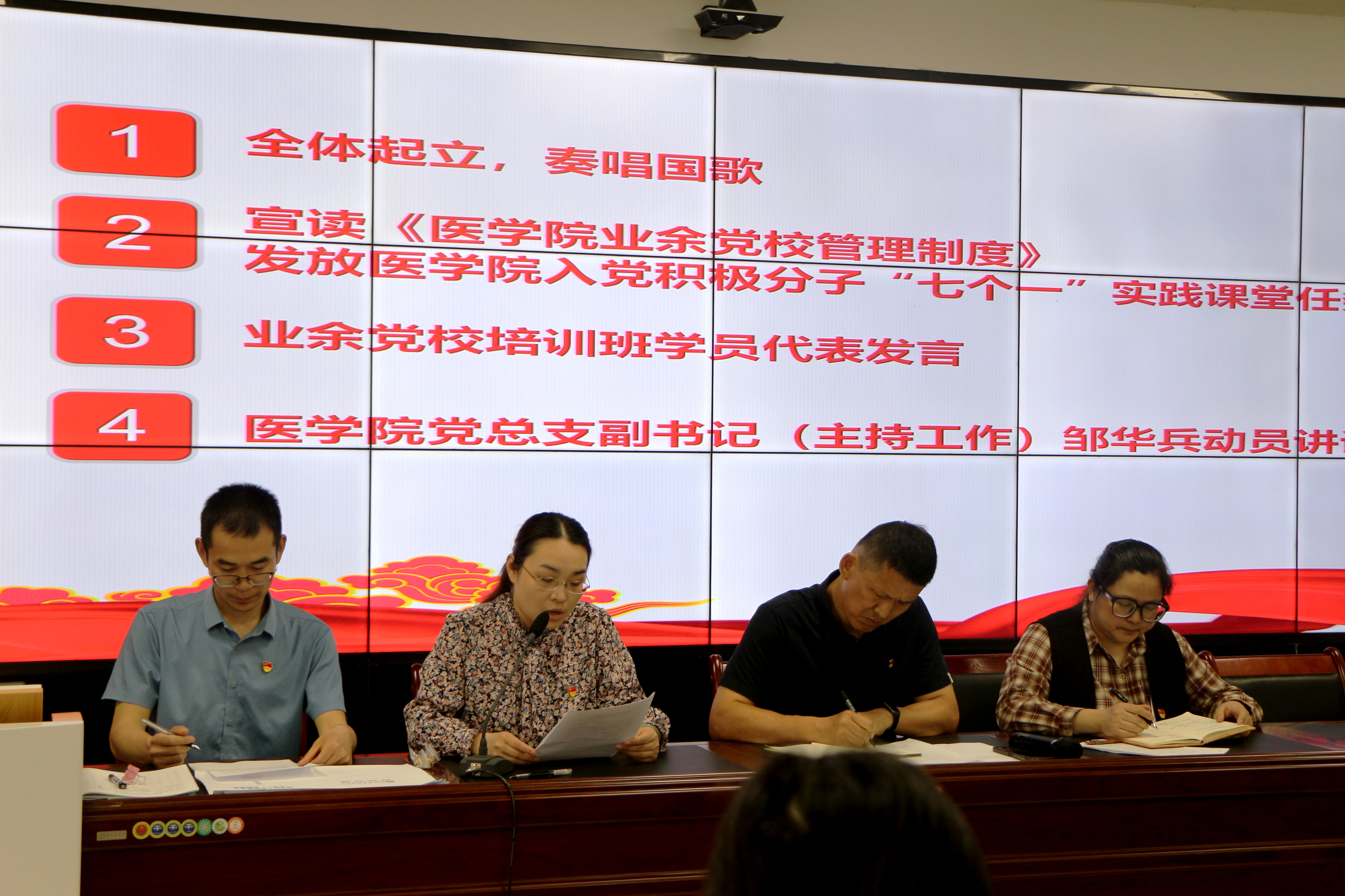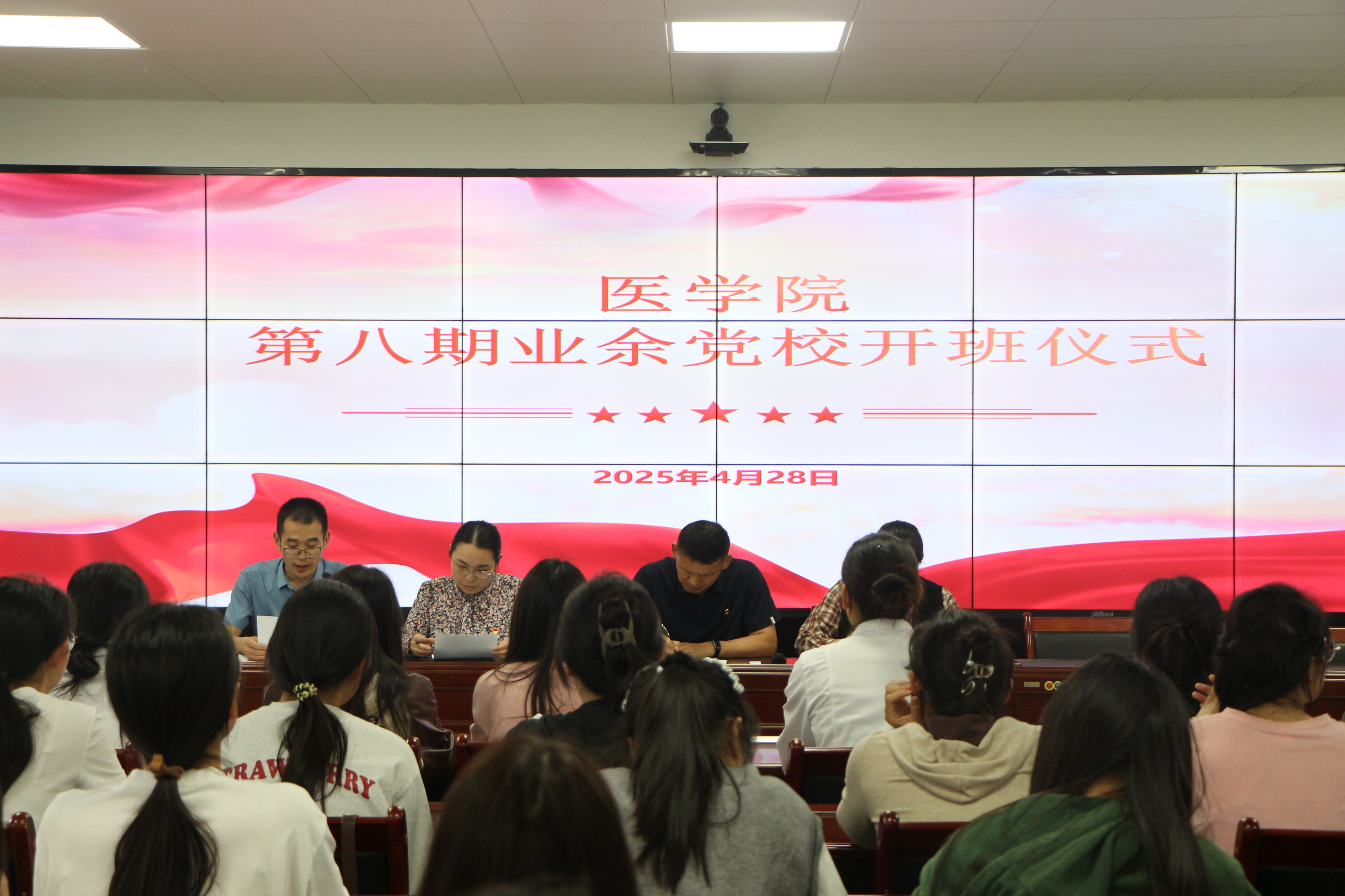 为深入学习贯彻习近平新时代中国特色社会主义思想,扎实推进新形势下党员发展工作,切实加强对入党积极分子的教育培养,4月28日下午,医学院在医学楼216会议室举办了第八期业余党校开班仪式。医学院党总支副书记(主持工作)邹华兵、医学院党总支副书记梁春艳,第六、第七、第八党支部教师党员以及77名学生入党积极分子参加了开班仪式,医学院专职组织员孔磊主持仪式。