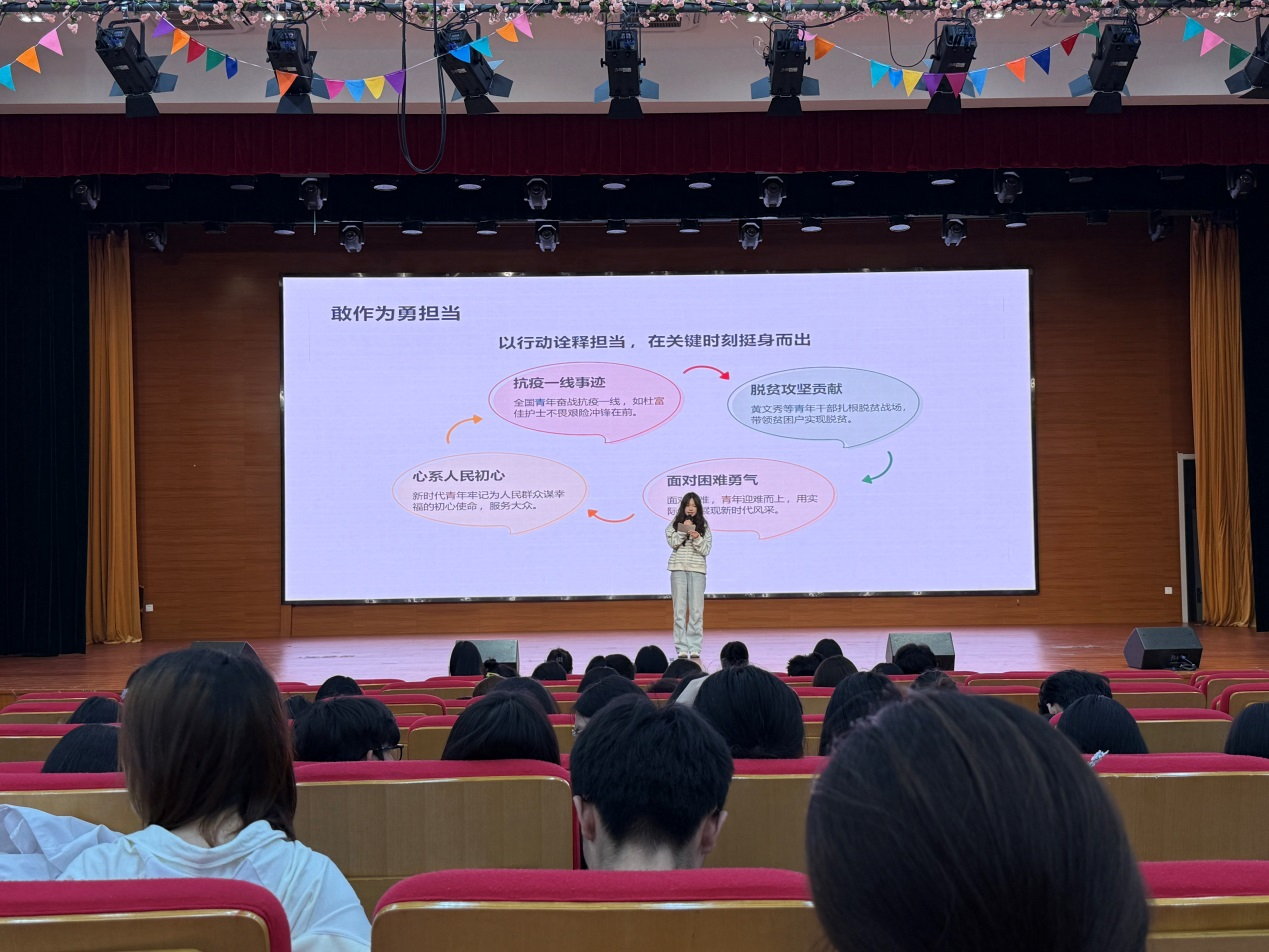 活动现场气氛热烈,掌声雷动。来自鼓山校区各学院的10名选手围绕主题,结合自己的学习和生活经历,用坚定的誓言展现青春的责任,以满腔的激情奏响时代的强音,深情讲述了青春与奋斗的故事。来自医学院24级临床2班的黄露露,以《与时代同频,让青春破茧》为主题,采用穿越的讲法,让百年前的青年目睹当代社会的飞速发展,并从他们的视角呈现了当今社会的繁荣景象。充满激情的演讲赢得了观众的热烈掌声。还有多位选手分别围绕科技创新、文化传承、乡村振兴等热点话题,展现了当代青年的多元视角和深刻思考。他们的演讲内容丰富、形式多样,既有慷慨激昂的论述,也有细腻入微的描绘,充分展现了青年学子的创新思维和表达能力。他们的演讲充分展示了当代青年的蓬勃朝气与热血情怀。
