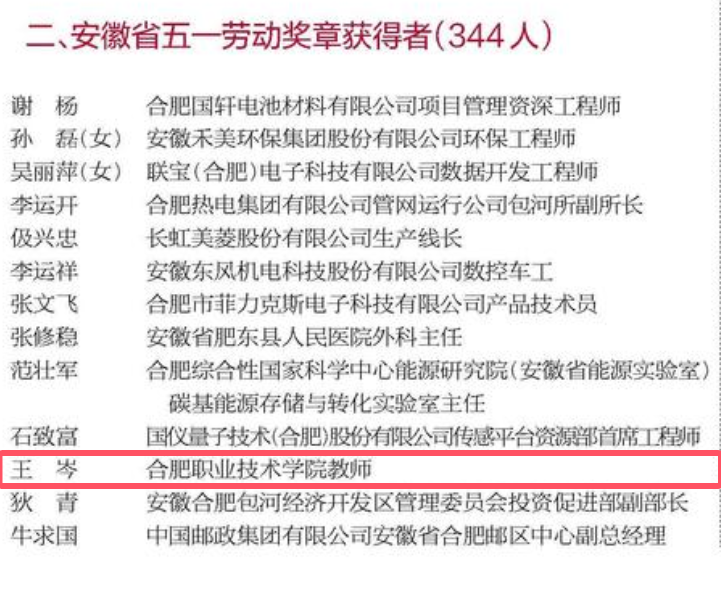 4月29日,安徽省总工会发布2025年安徽省五一劳动奖、工人先锋号和劳动竞赛先进个人光荣榜,AC米兰官网汽车工程学院教师王岑荣获“2025年安徽省五一劳动奖章”。