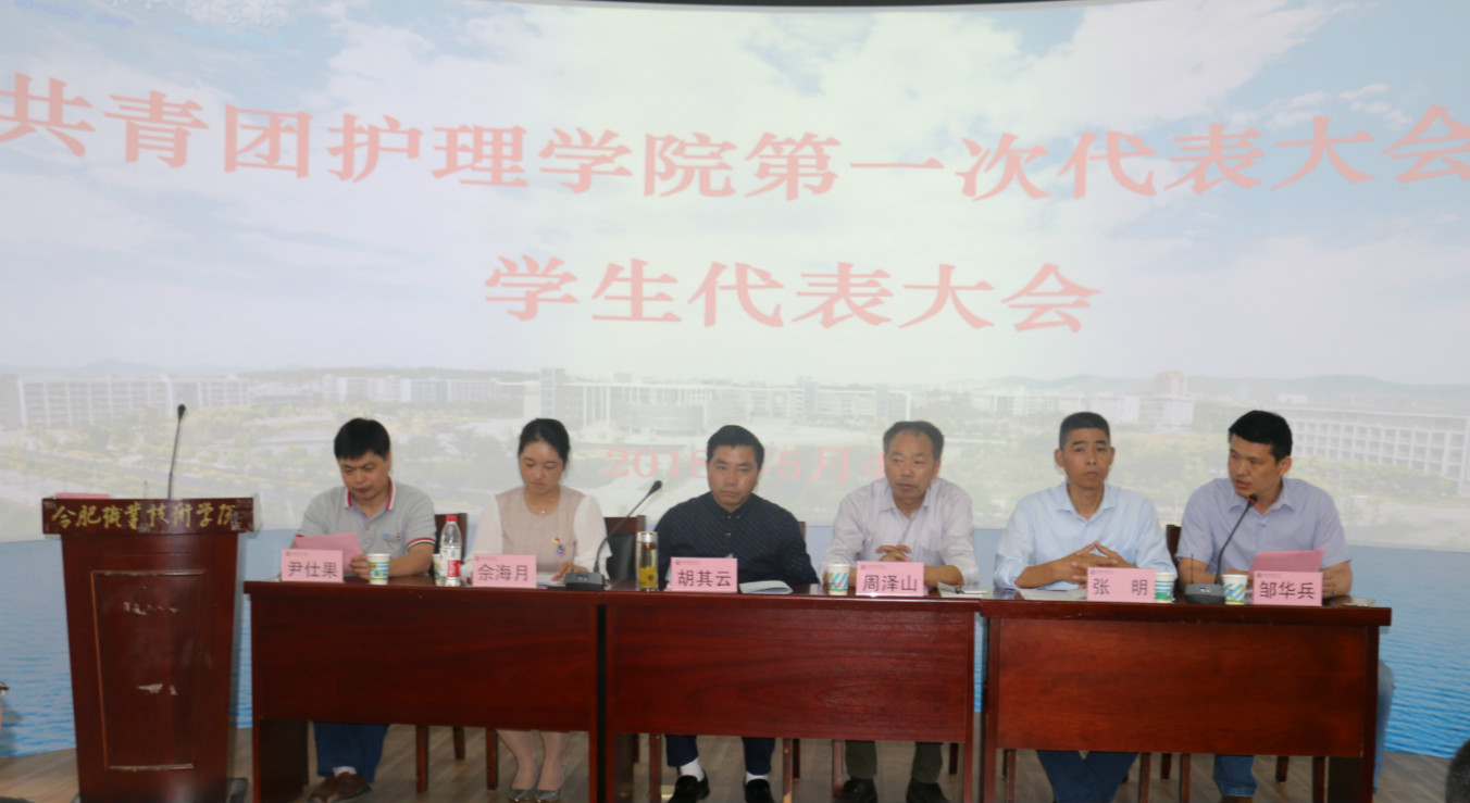 为深入学习贯彻习近平新时代中国特色社会主义思想和党的十九大精神,认真回顾和总结近一年团总支、学生会的各项工作,确定今后一段时期团总支、学生会的奋斗目标和工作任务,选举产生护理学院新一届团总支委员和团学组织干部,推动护理学院团学组织更好的发展,5月4日下午,护理学院在图书馆二楼报告厅召开共青团护理学院第一次代表大会暨学生代表大会。校党委副书记胡其云、团委书记佘海月、组织部部长周泽山、学工部副部长尹仕果应邀出席,与护理学院党总支书记张明、副院长王玉蓉(主持行政工作),教师代表和143名团学代表齐聚一堂,共同参加本次大会。会议由护理学院党总支副书记邹华兵主持。