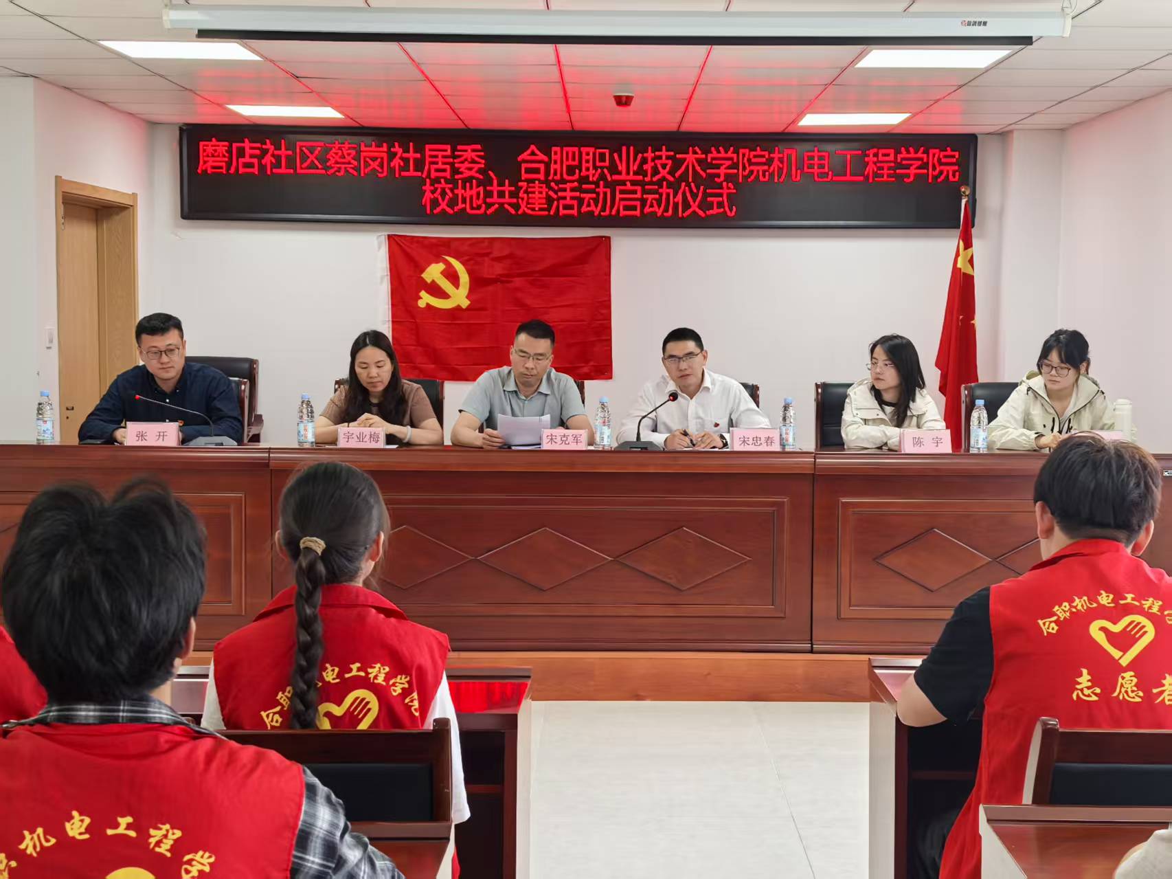 为进一步加强校地党建合作,践行“奉献、友爱、互助、进步”的志愿精神,推动校地资源共享、优势互补,提升党建工作水平,5月10日上午,机电工程学院与磨店社区蔡岗社居委举办“大学生志愿服务实践基地”“安徽省高校党建工作样板支部培育共建基地”签约揭牌启动仪式。机电工程学院党总支副书记宋忠春,磨店社区蔡岗社居党总支副书记宋克军,蔡岗社居党总支委员宇业梅,机电工程学院第五党支部教师党员及社区工作者、学生志愿者代表参加本次启动仪式。
