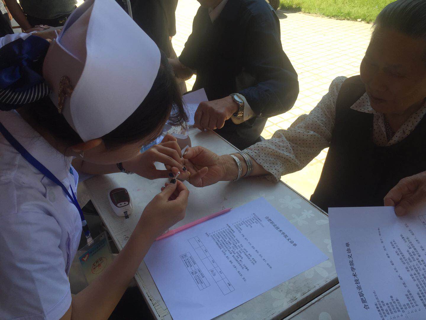 活动现场,人潮涌动,志愿者忙前忙后张罗着,热情接待每一位居民。青年志愿者充分发挥自己的专业知识和技能,为社区居民提供健康教育手册、免费测血糖、血压等便民志愿服务活动。