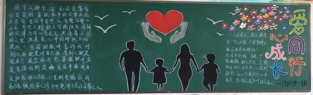 为配合学校心理健康月宣传活动,让学生关注自身心理健康,树立正确的心理健康观念,护理学院在5月23日开展了“爱同行 心成长”黑板报评比活动。历时一周的创作,同学们用美丽的色彩、抒情的文字传达心灵健康的理念。比赛共评出一、二、三等奖若干名。