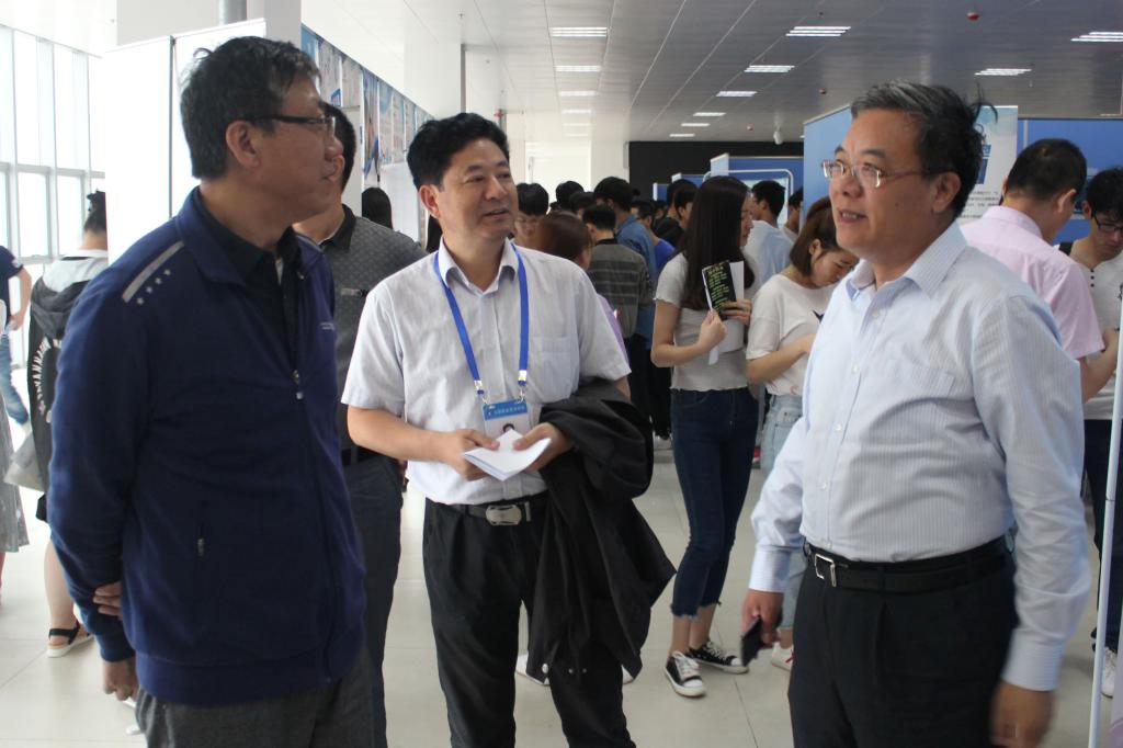5月26日上午,信电学院在培训楼一楼举办了2018年实习就业专场招聘会。学院纪委书记金辉、学生处处长高恒平等校领导以及学院就业部门负责同志来到招聘会现场指导工作。