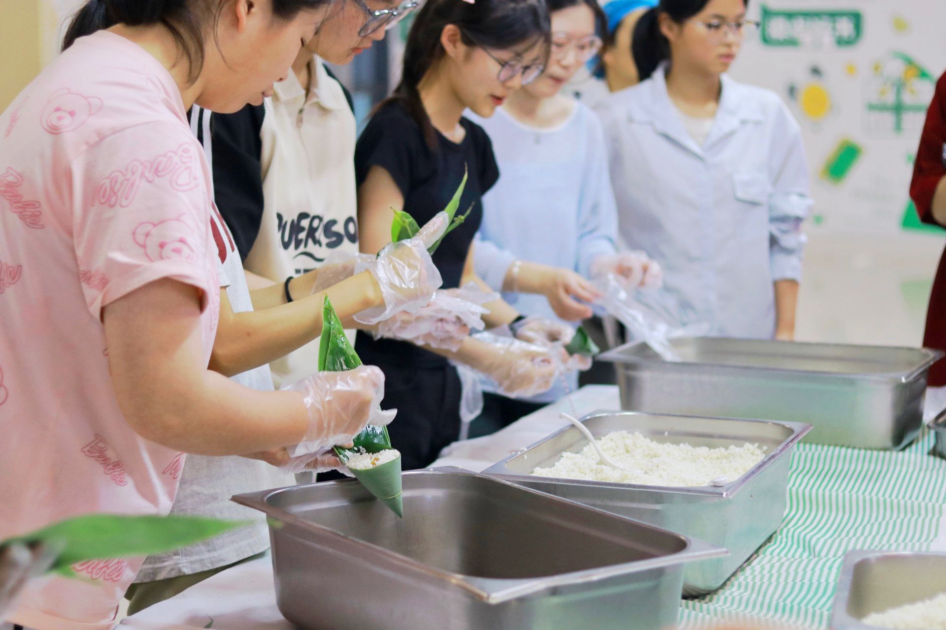 为弘扬中华优秀传统文化,增进师生情谊,营造温馨和谐的学院氛围,5月30日下午,机电工程学院团总支在汇心湖校区食堂一楼精心组织了一场“青叶裹香承古韵 巧手系彩续华章”主题团日活动。