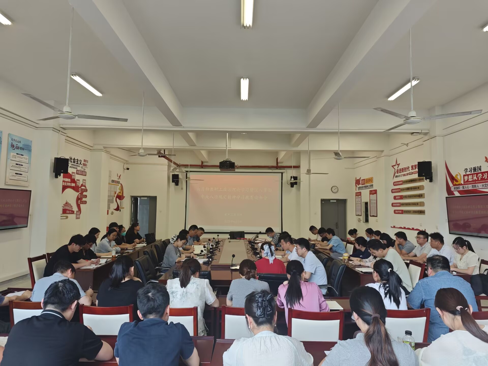 6月4日下午,机电工程学院在机电楼二楼会议室组织召开六月份教职工政治理论学习暨深入贯彻中央八项规定精神学习教育读书会,会议由该院党总支副书记(主持工作)丁迎春主持。
