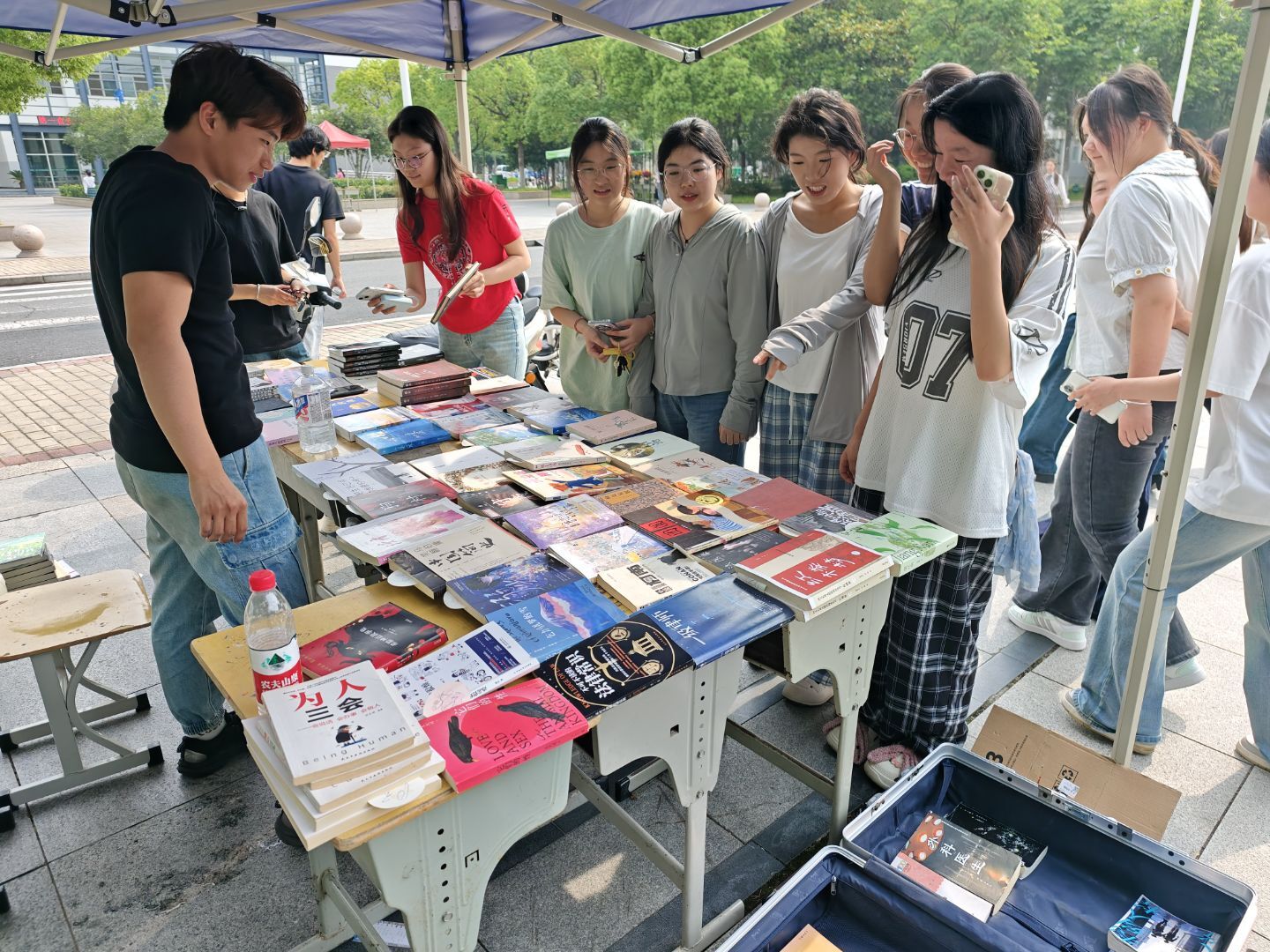 活动当日,现场人头攒动,一个个摊位整齐排列,琳琅满目的商品令人目不暇接。从学习资料、经典教材到文学书籍,从实用电子产品、特色文创到精美服饰鞋包及各类生活用品等,种类丰富,价格亲民,满足了同学们多样化的需求。参与者们精心布置自己的摊位,不仅制作了创意十足的宣传海报,还别出心裁地设置了趣味互动环节。同学们在各个摊位间穿梭,挑选心仪的物品。整个交易过程充满了欢乐与惊喜,整体氛围轻松愉悦。