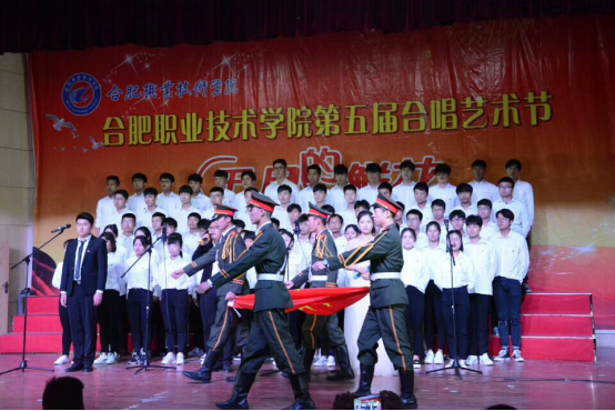“新征程的号角震天响……”坚定且铿锵有力的开场白缓声响起,“齐步——走!”与此同时,如机器控制般,军装小伙们迈出有力的步伐,他们手中那团火是那样耀眼。“敬礼!”此时,开场白已然高潮,刹时,红色绽放,掌声雷动。“听吧新征程号角吹响……”响亮的歌声传递着17工造3、4班组成的“自强队”的信念,展示着他们最好的青春。此刻,他们就是最美的鲜花!他们的精彩演唱震撼了每一个人。