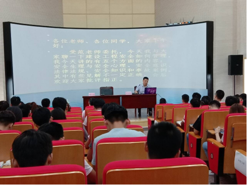 侯站长从安全生理与安全心理、安全意识、安全生产法律法规、安全知识、事故案例等五个方面,深入浅出地介绍了施工现场安全操作规范以及施工现场安全管理基本要求,通过典型的事故案例分析,使同学们对于建筑施工现场安全生产的重要性有了更加深刻的认识,牢固树立安全意识,加强安全责任心,让学生上岗前牢记“以人为本,安全第一、预防为主”安全理念。