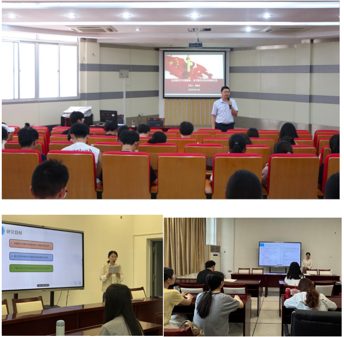 支部党员不仅躬身实践,更在5月、6月相继举办三场学术讲座,注重思想引领与学术赋能。5月14日下午,基础教育学院副院长(主持工作)、联系支部的党员施敏发在鼓山校区图书馆一楼第一报告厅,为青年马克思主义学会全体成员及学生代表做了题为“弘扬新时代中国精神,当代青年应有的精神状态”的学术讲座。他勉励青年学子争做“清醒的破壁者”“有温度的创新者”“扎根大地的理想者”和“文明的转译者”,引发强烈共鸣,点燃了学子们传承匠心,践行中国精神的行动热情。学术之火接力传递。支部党员胡媛媛和金玲先后于5月28日、6月11日在学院党员活动室,分别围绕“共同富裕统计监测和评价研究”与“基于AI技术的交互式课堂建构及实证研究”开坛设讲。两场聚焦科技前沿、深入浅出的讲座,吸引了近百名师生代表,有效拓宽了师生们的学术视野,为教学科研提供了宝贵的经验借鉴。