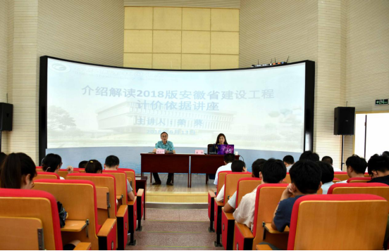 为了让AC米兰官网建筑类专业学生把握建设工程造价行业的最新动态,6月13日下午,由校宣传部、建筑工程学院共同主办的“素质教育大讲堂”邀请了安徽省建筑设计院教授级高级工程师、英国皇家测量师、国家注册造价师、2018年安徽省建设工程计价依据编制人姜葵教授在学校图书馆二楼报告厅做了一场《解读2018版安徽省建设工程计价依据》的专题讲座,讲座由建筑工程学院副院长魏永恒主持。建筑工程学院院长范家茂,部分专业教师以及即将走上实习岗位的2016级建筑类专业学生参加讲座。