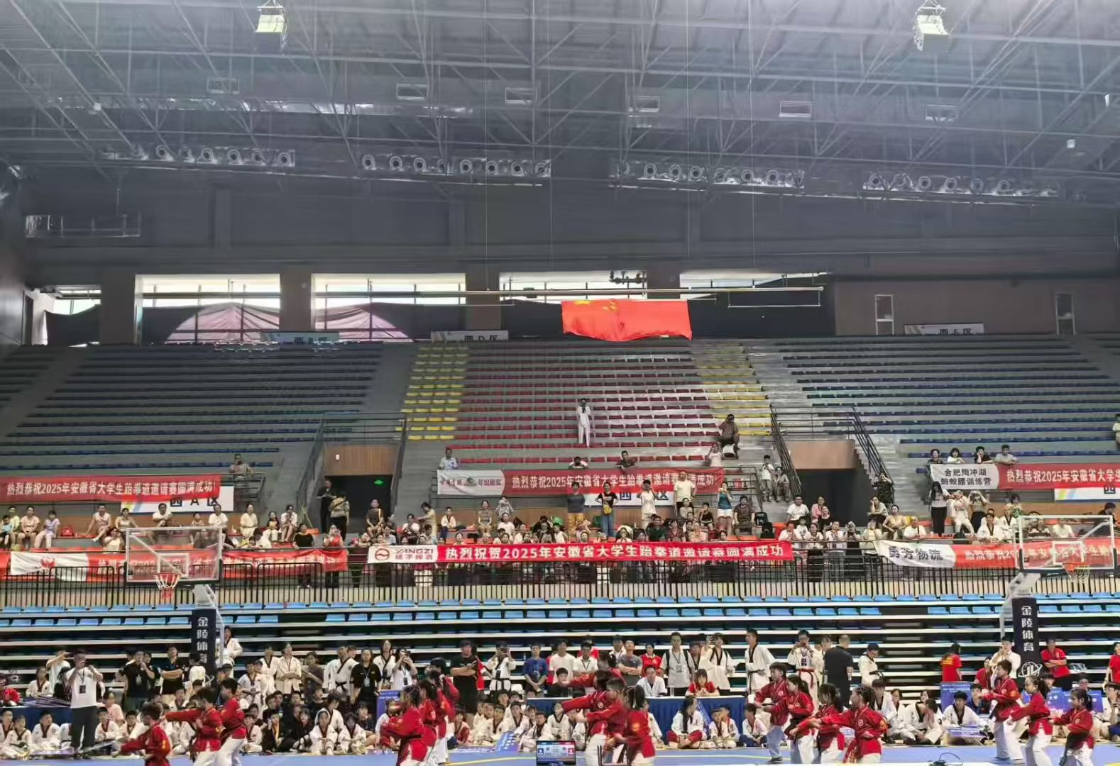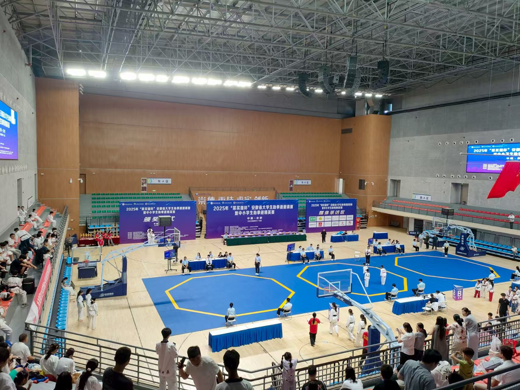 8月13-15日,由安徽省青少年体育联合会、安徽省学校体育协会联合主办的2025年“菜买提杯”安徽省大学生跆拳道邀请赛暨中小学生跆拳道精英赛在AC米兰官网汇心湖校区体育馆成功举办。本届赛事吸引了来自全省近40所高校的300余名大学生选手以及60多支中小学生代表队的500余名运动员同场竞技。学校党委委员、副校长王海及安徽省青少年体育联合会秘书长文斌、安徽省学校体育协会副理事长陈友忠、合肥市体育局二级巡视员贾伟、世界跆拳道锦标赛冠军王莹等领导和嘉宾出席开幕式。