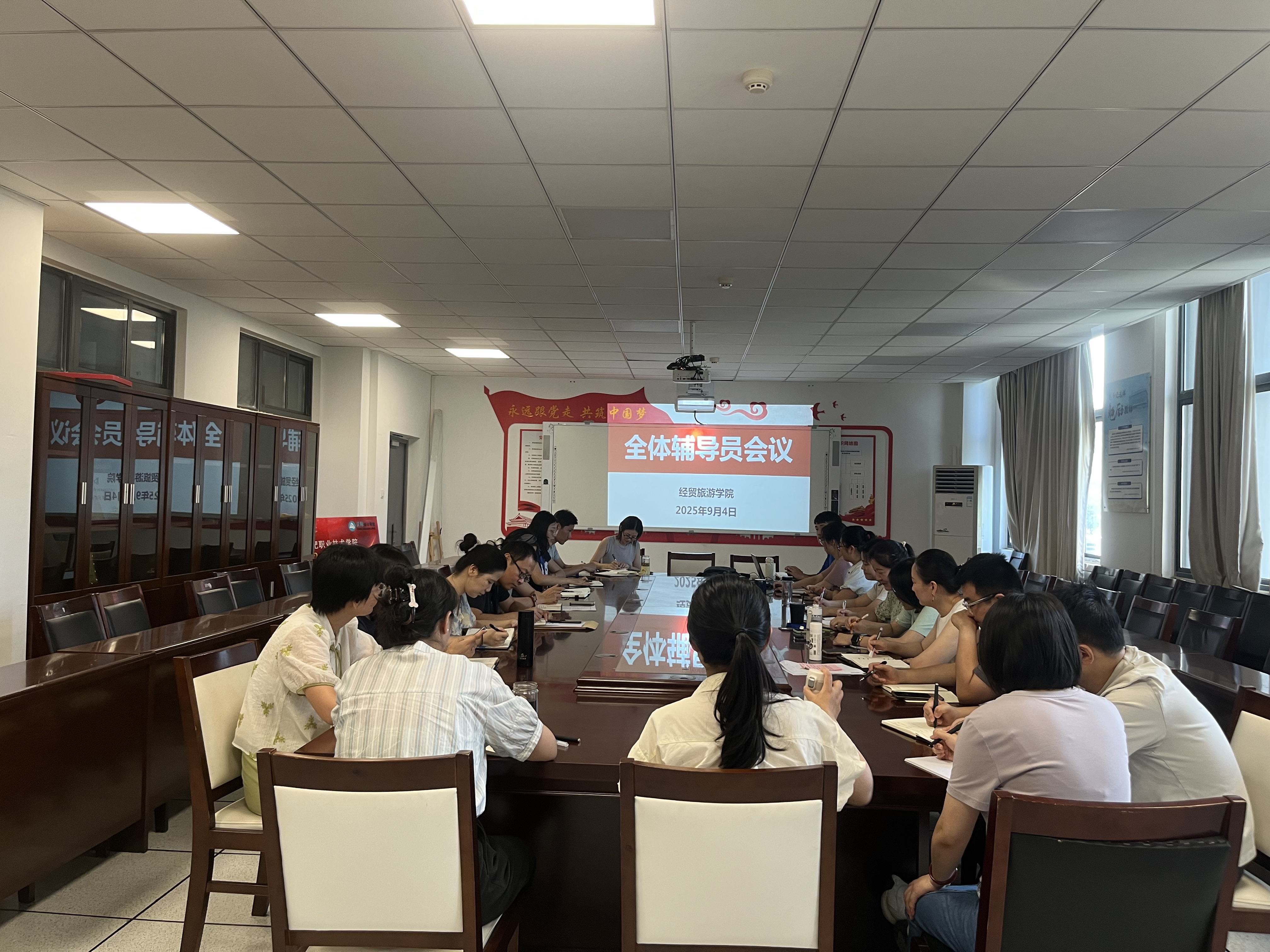 9月4日上午,经贸旅游学院在学院会议室召开新学期工作会议,全面安排2025-2026学年新学期学生教育、管理与服务工作,确保新学期各项工作有序推进、高效落实。该院党总支副书记赵倩倩、学管办主任王明明、教学办闫瑞阳及全体专兼职辅导员参会。会议围绕老生返校、新生报到、学风建设、宿舍管理、资助政策、心理健康教育、党团建设等多个方面展开详细布置,为新学期学生工作指明方向。
