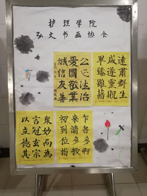 为丰富校园文化生活,提升学生的综合素养,弘扬传统文化,传承书法艺术。6月13日护理学院弘文书画协会举办了以“弘扬民族文化”为主旨的大学生书法比赛。