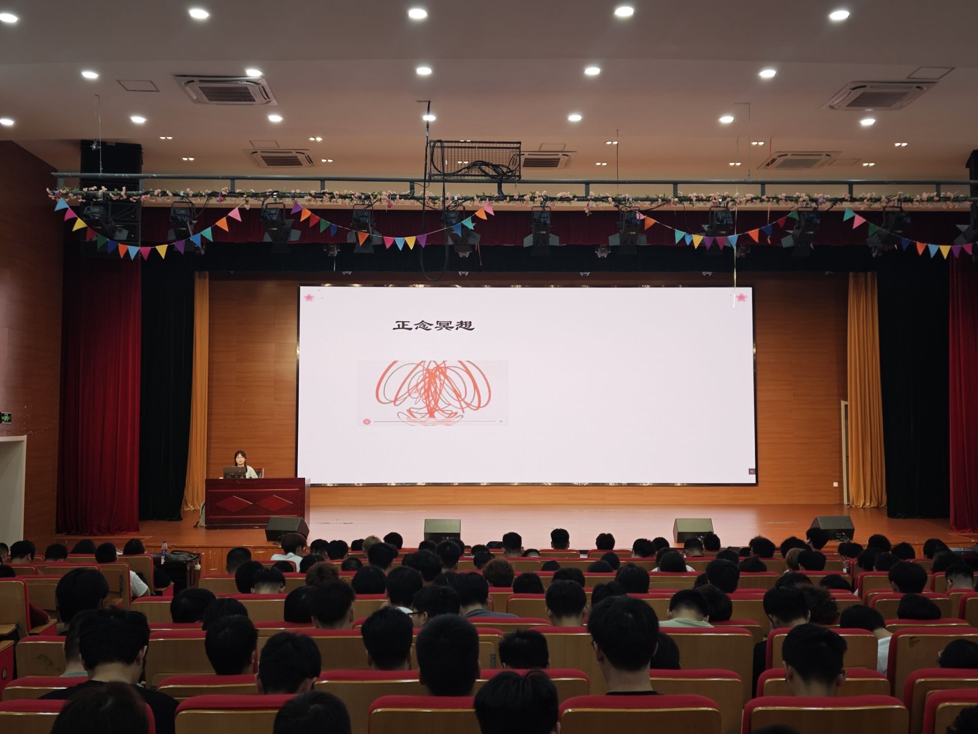 孙月老师以互动提问切入,围绕 “常见大学新生适应问题”“适应方法”“求助途径” 三大板块展开,结合四个典型案例直击新生痛点,每个案例都贴合新生真实生活场景,让在场同学深刻意识到 “适应” 是大学生活的重要起点。最后孙月老师从 “认知事实、掌握方法、了解途径” 三方面给出系统解决方案。面对负面情绪,她分享了宣泄、倾诉、有氧运动、放松训练、时间稀释五种调适方法,引导新生科学管理情绪。
