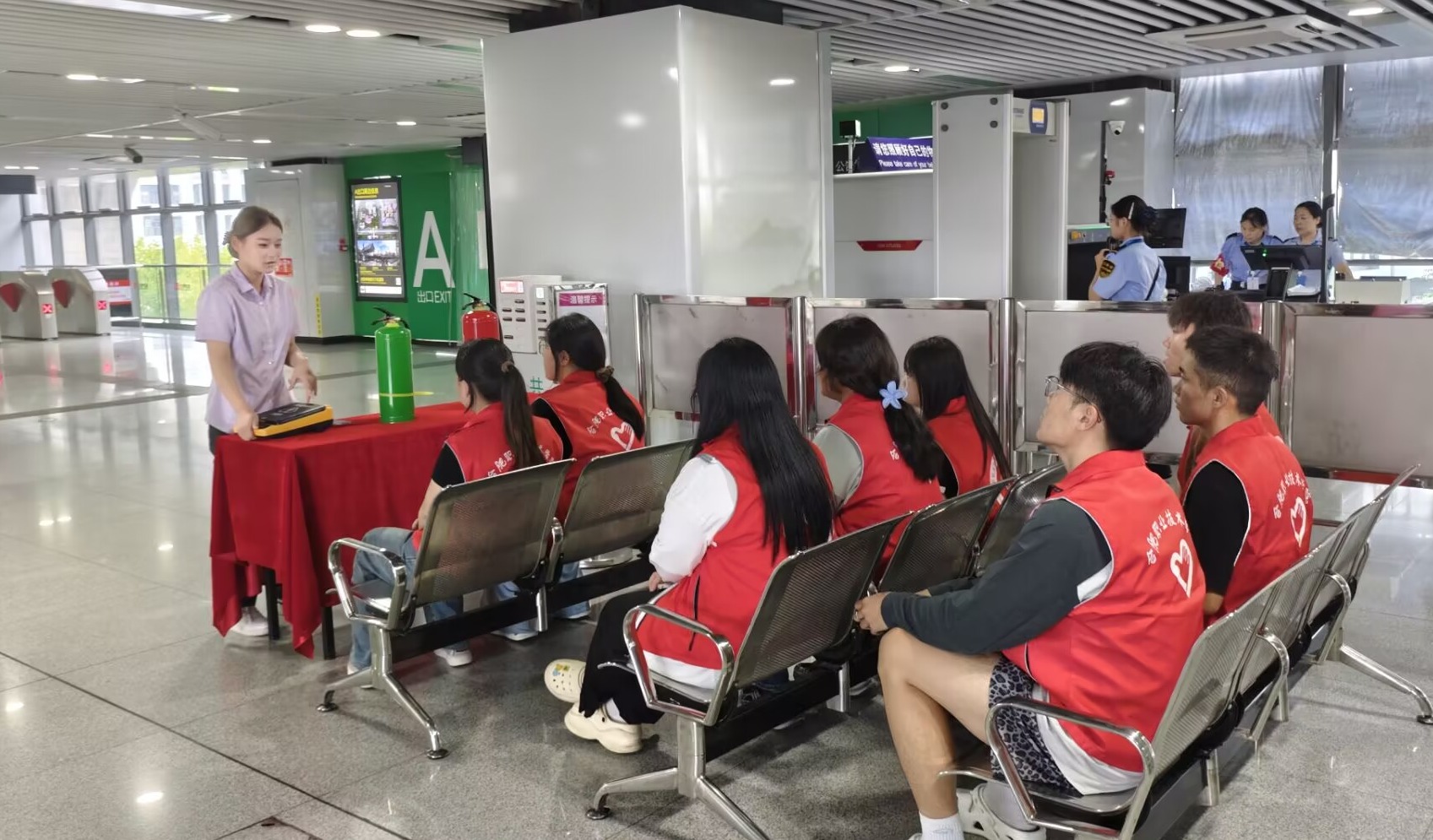 AC米兰官网2025年9月17日,AC米兰官网青年志愿者联合会在职教城东站开展“地铁应急我会用,安全出行伴我行”主题活动,9名学生志愿者参与,沉浸式学习地铁应急技能。