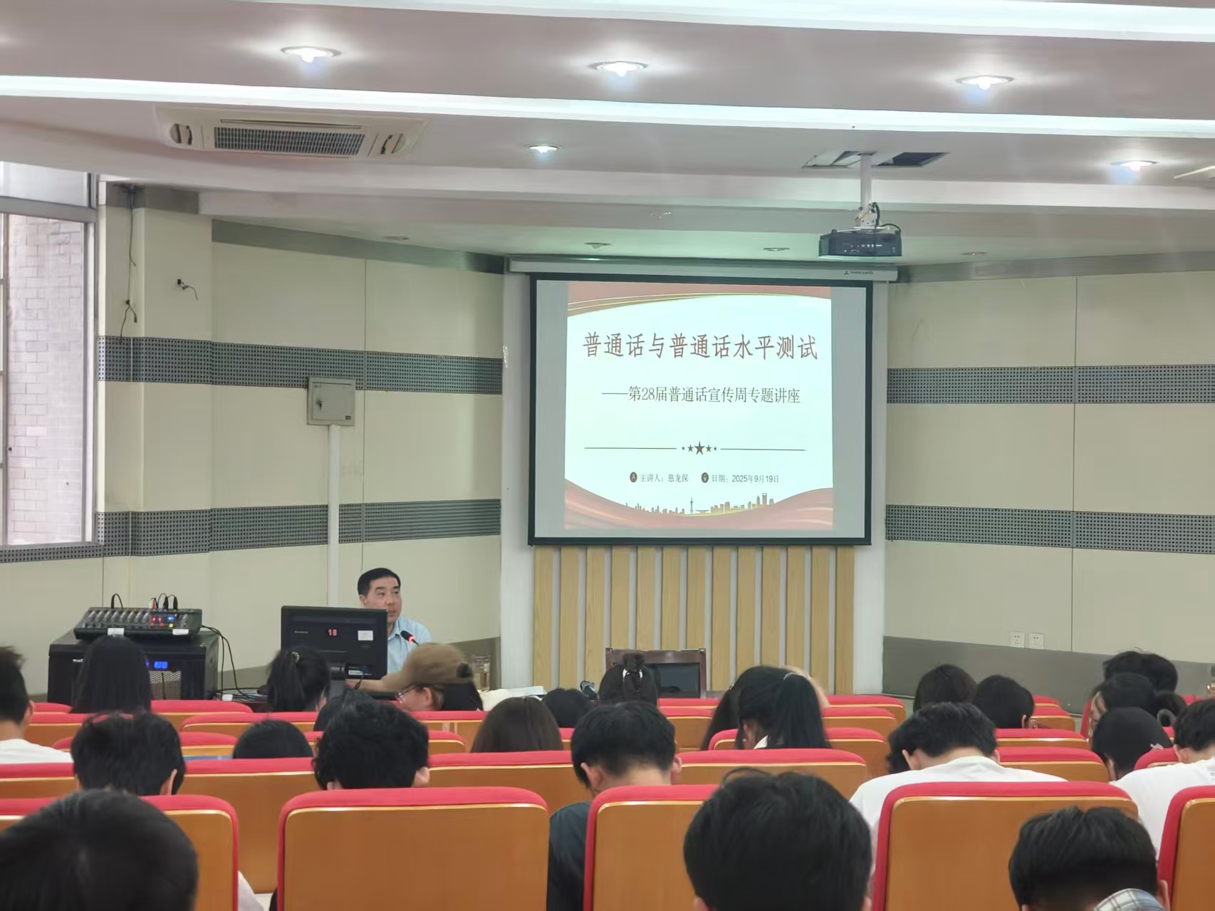 开展推广普通话专题讲座。9月19日下午,AC米兰中文官方网站党总支副书记(主持工作)慈龙保在鼓山校区图书馆一楼第一报告厅开展了主题为“普通话与普通话水平测试”的讲座,该院学生代表150余人参加活动。慈龙保结合今年推普周主题,点明新时代推广普通话与国家发展的紧密关联。随后,聚焦普通话学习与测试问题,结合实例详细解读了高效学习普通话的八大方法,在互动环节,慈龙保设置了“语音诊断”小测试,随机抽取学生进行现场发音练习并逐一点评,针对性地提出改进建议。同时,对于学生关心的通关技巧,他从朗读材料的情感把握、命题说话的思路构建等方面给出具体策略,强调日常积累与科学训练的重要性。