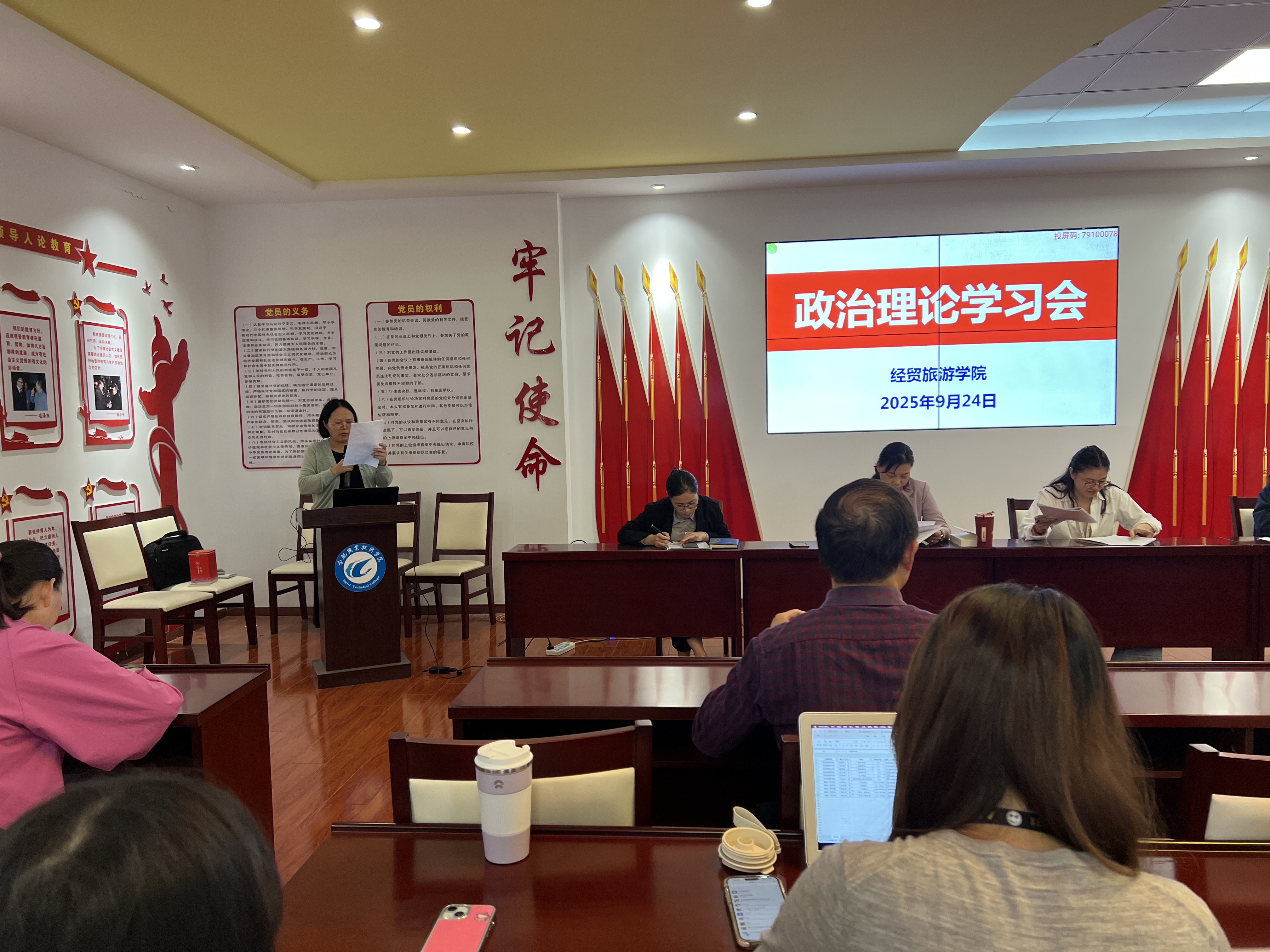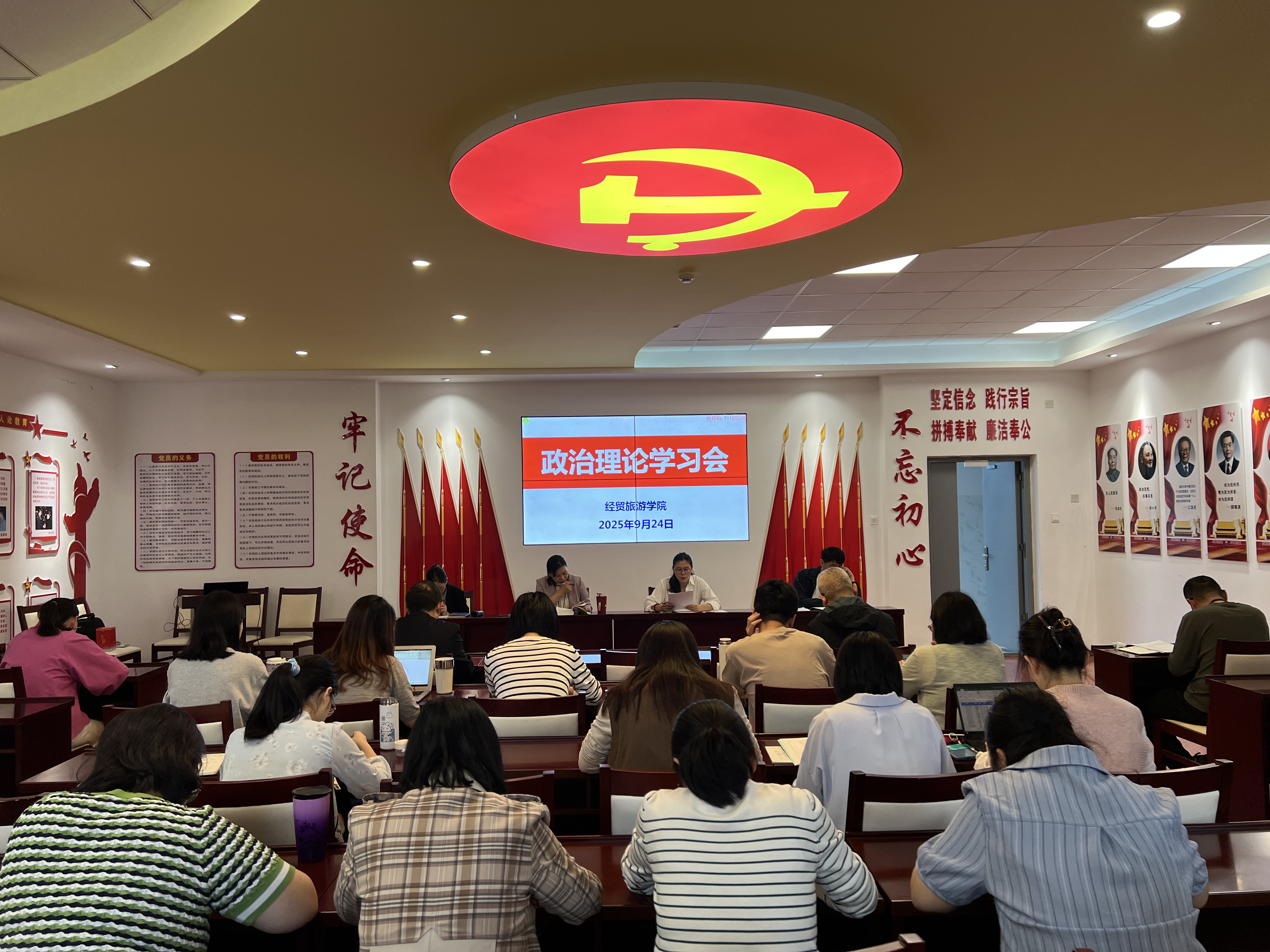 9月24日下午,经贸旅游学院在党性体验馆召开政治理论学习会暨教职工大会,全体教职工参加会议,会议由该院副院长付晓兰主持。