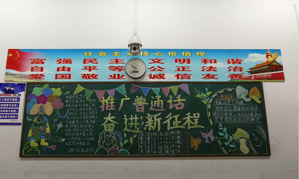 各班级积极响应,精心策划并制作了以推广普通话为主题的黑板报。同学们发挥创意,将普通话的重要性、推广普通话的标语以及相关的文化知识融入精美的板报设计中。有的班级以生动形象的图片展示了普通话在日常生活中的应用;有的班级则用富有感染力的文字呼吁大家说普通话、写规范字。