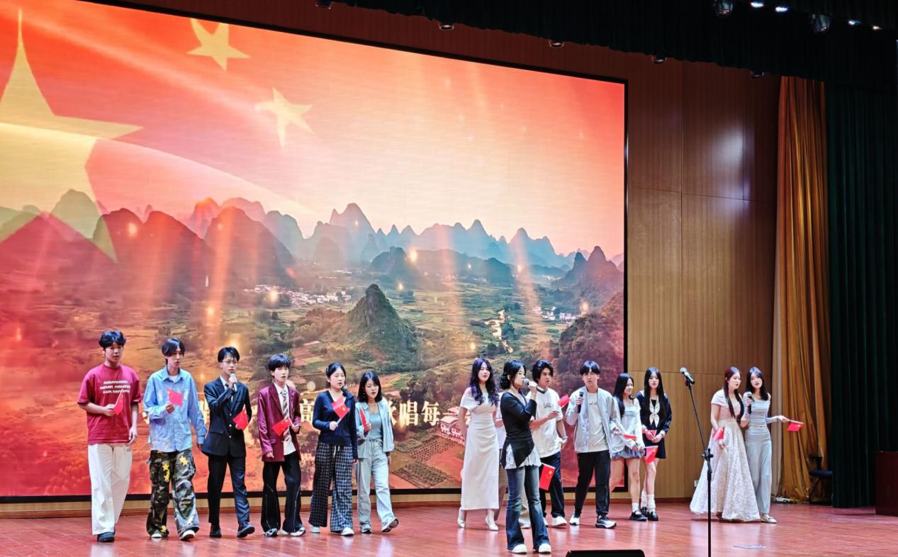 当《我和我的祖国》熟悉的旋律在迎新晚会现场响起时,全场师生共同合唱。悠扬的歌声与挥舞的国旗交织,将晚会氛围推向高潮,不仅让2025级新生在歌声中感受集体温暖,更在沉浸式体验中厚植家国情怀,让“爱国”二字成为青春最鲜明的底色。