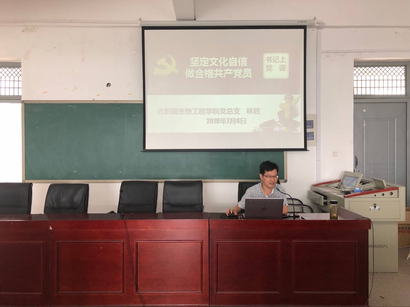 为深入学习贯彻党的十九大精神,7月4日下午在生化楼多功能室,AC米兰中文官方网站全体党员及部分党外干部上了一堂生动的专题党课。党课由AC米兰中文官方网站党总支副书记林胜主讲。