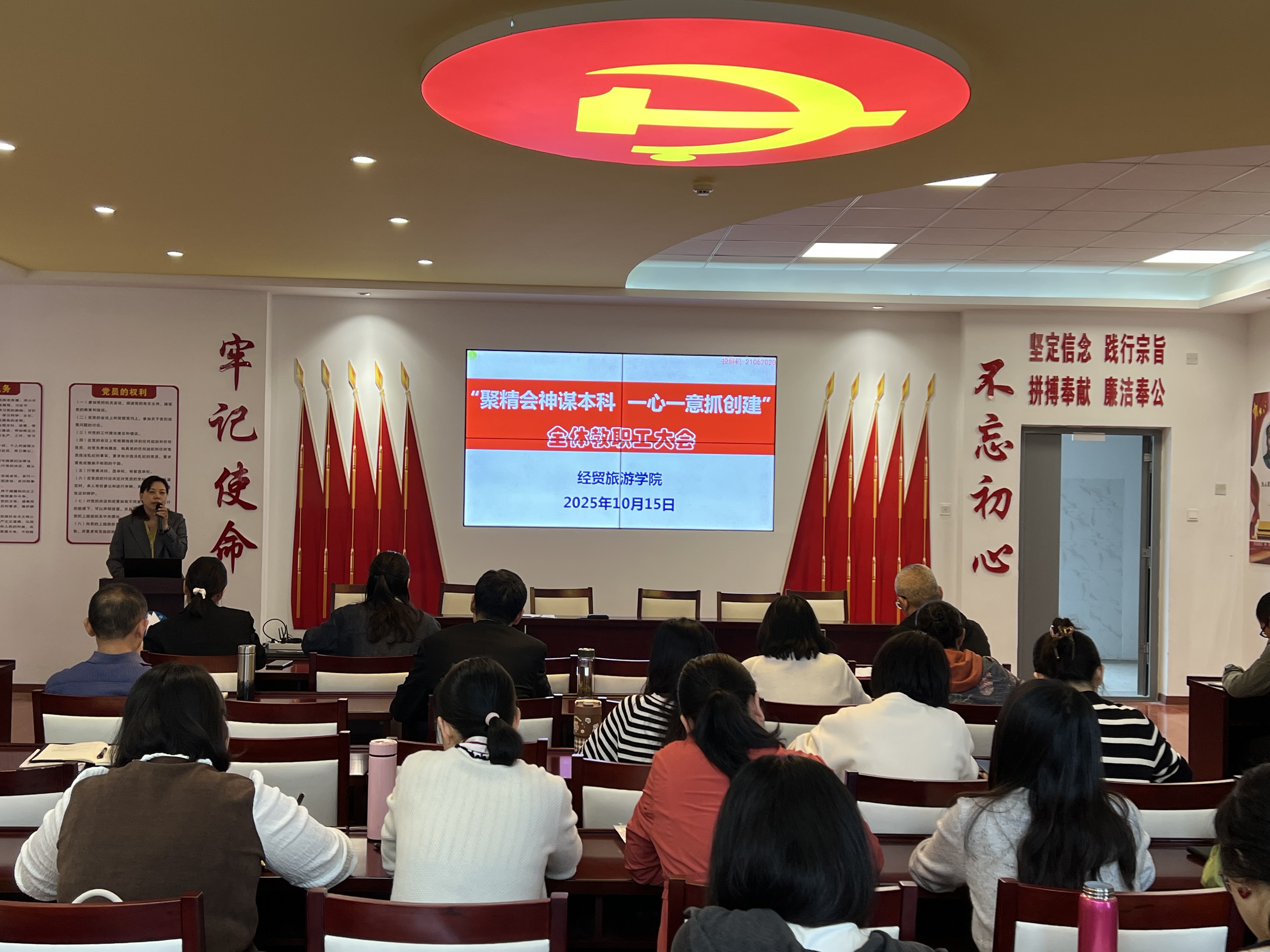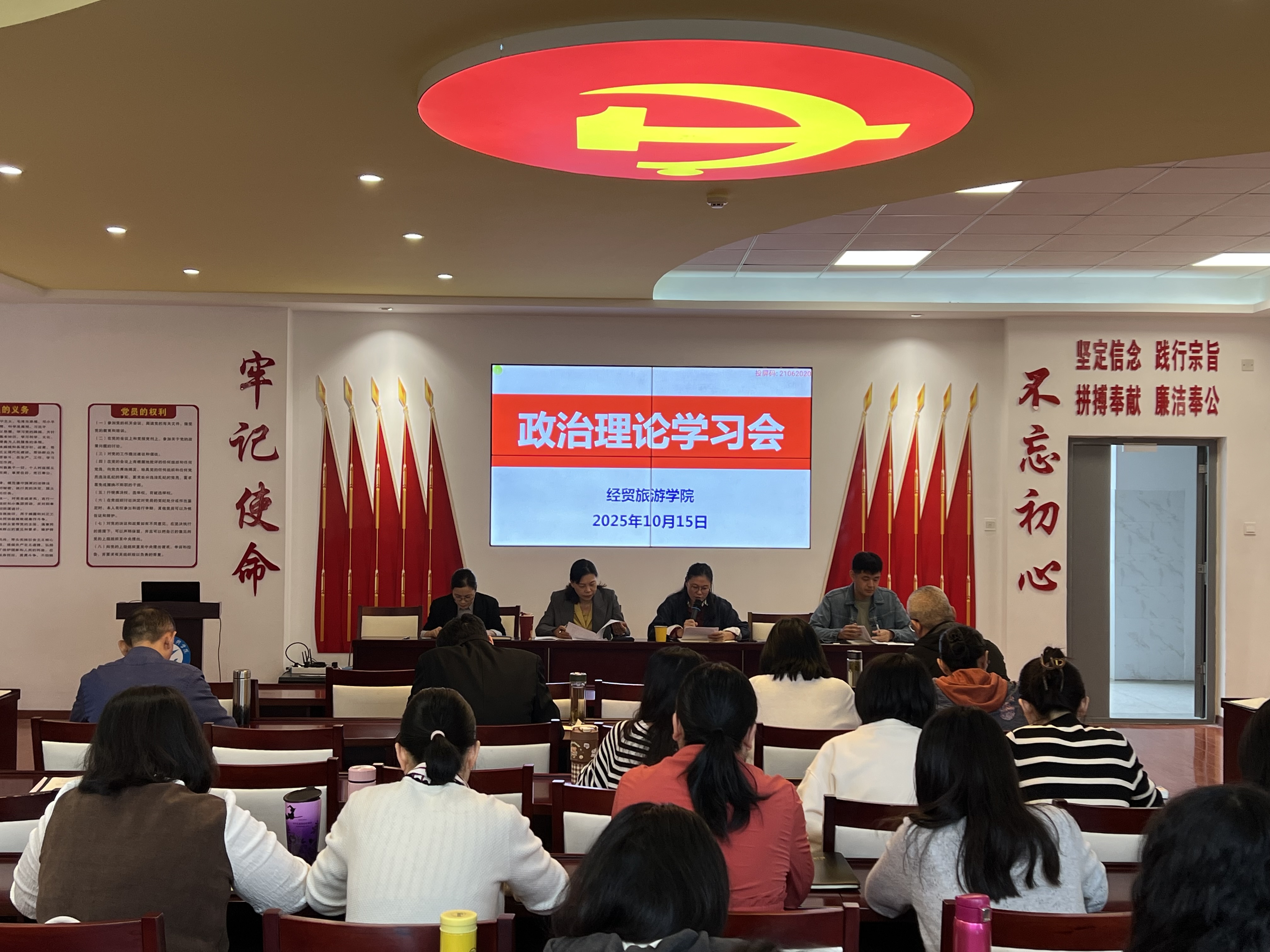 10月15日下午,经贸旅游学院在党性体验馆召开10月份政治理论学习会暨教职工大会,全体教职工参加会议,会议由该院副院长付晓兰主持。