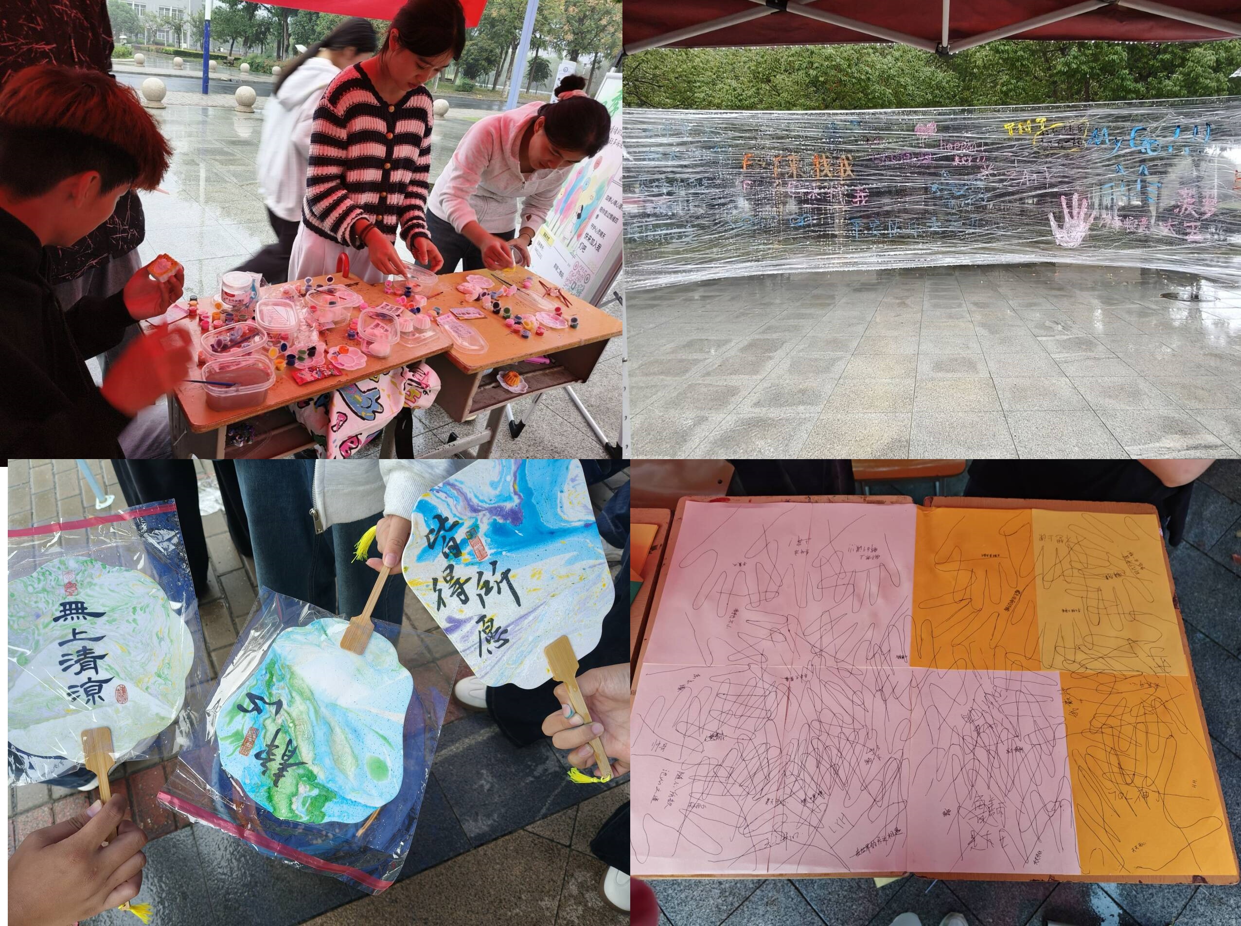心理游园会——趣味游戏解锁心灵能量。活动场地化身“心灵能量站”,四季心晴社作为主办方,精心设计多个心理互动环节,如膜法留言区、石膏娃娃填色、Stroop来挑战、请与我击掌、非遗漆扇DIY等,考验参与者的心理素质与应变能力。参与者们穿梭于各个摊位,或石膏娃娃填色全神贯注,或运用心理学工具Stroop来挑战为心灵“减负”,或沉浸式体验中华传统文化非遗漆扇DIY活动等。同学们踊跃参与,释放压力,用小小的成功瞬间点亮好心情!