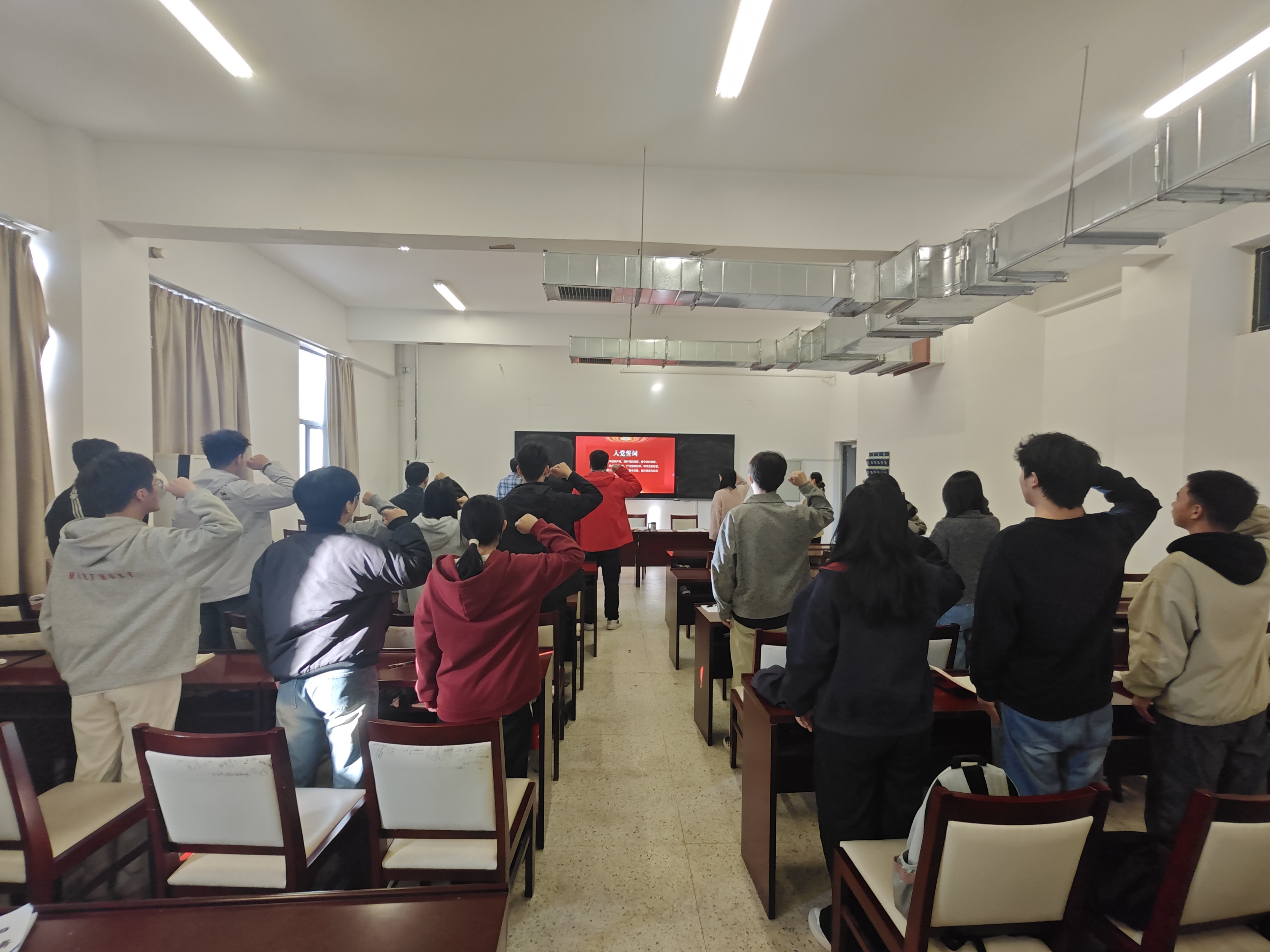 紧接着,全体党员同志面向鲜红的党旗,举起右拳,进行了庄严的入党宣誓。“我志愿加入中国共产党,拥护党的纲领,遵守党的章程……”铿锵有力的誓言回荡在会场,表达了党员们为党的事业奋斗终身的决心和信念。