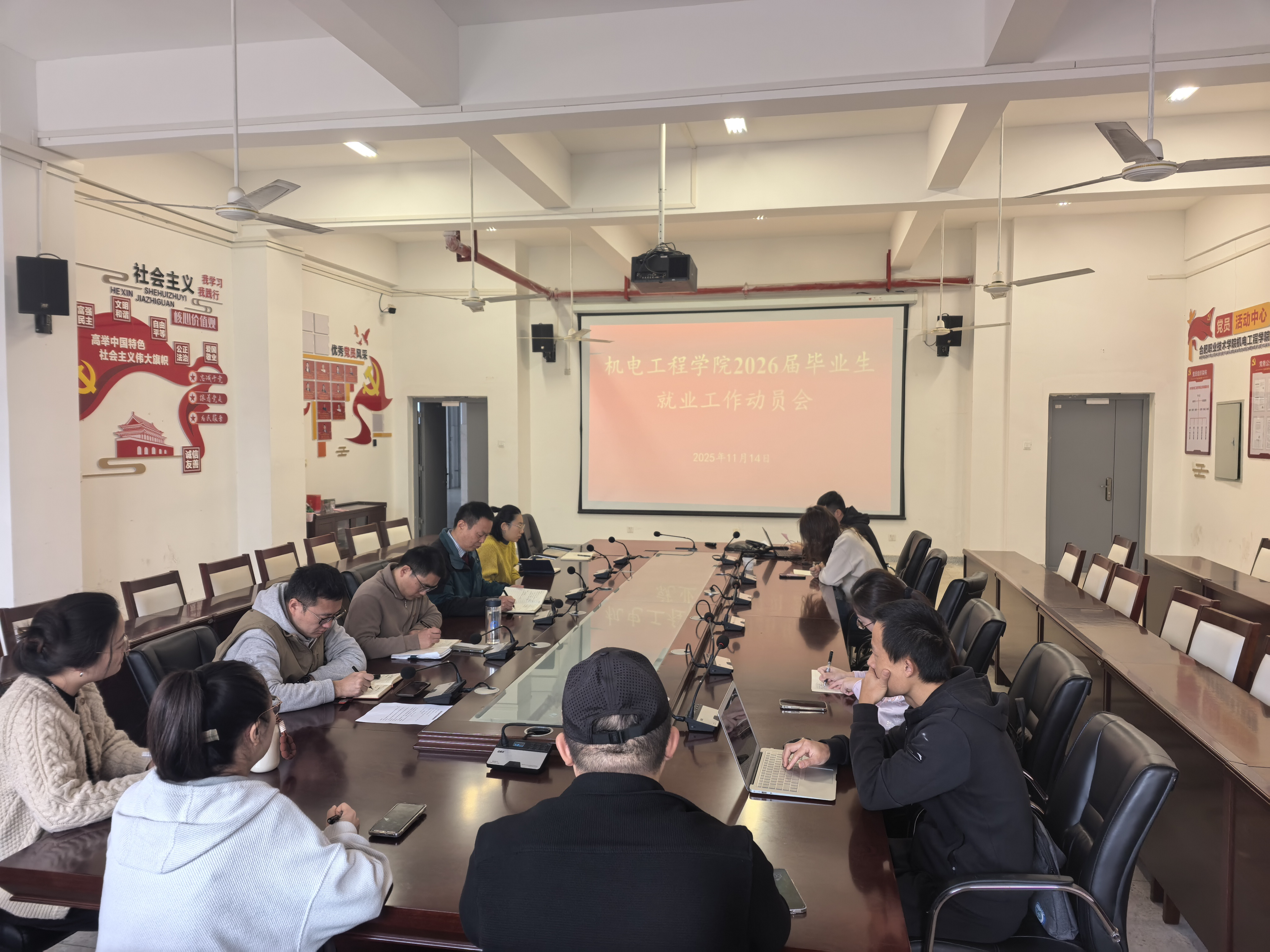 为深入贯彻落实党中央、国务院关于高校毕业生“高质量充分就业”的决策部署,切实提升就业指导服务的精准性与实效性,11月14日,机电工程学院召开2026届毕业生就业工作专项动员会。该院党总支书记丁迎春出席会议并作动员讲话,会议由该院党总支副书记宋忠春主持,2026届全体毕业班辅导员参加会议。