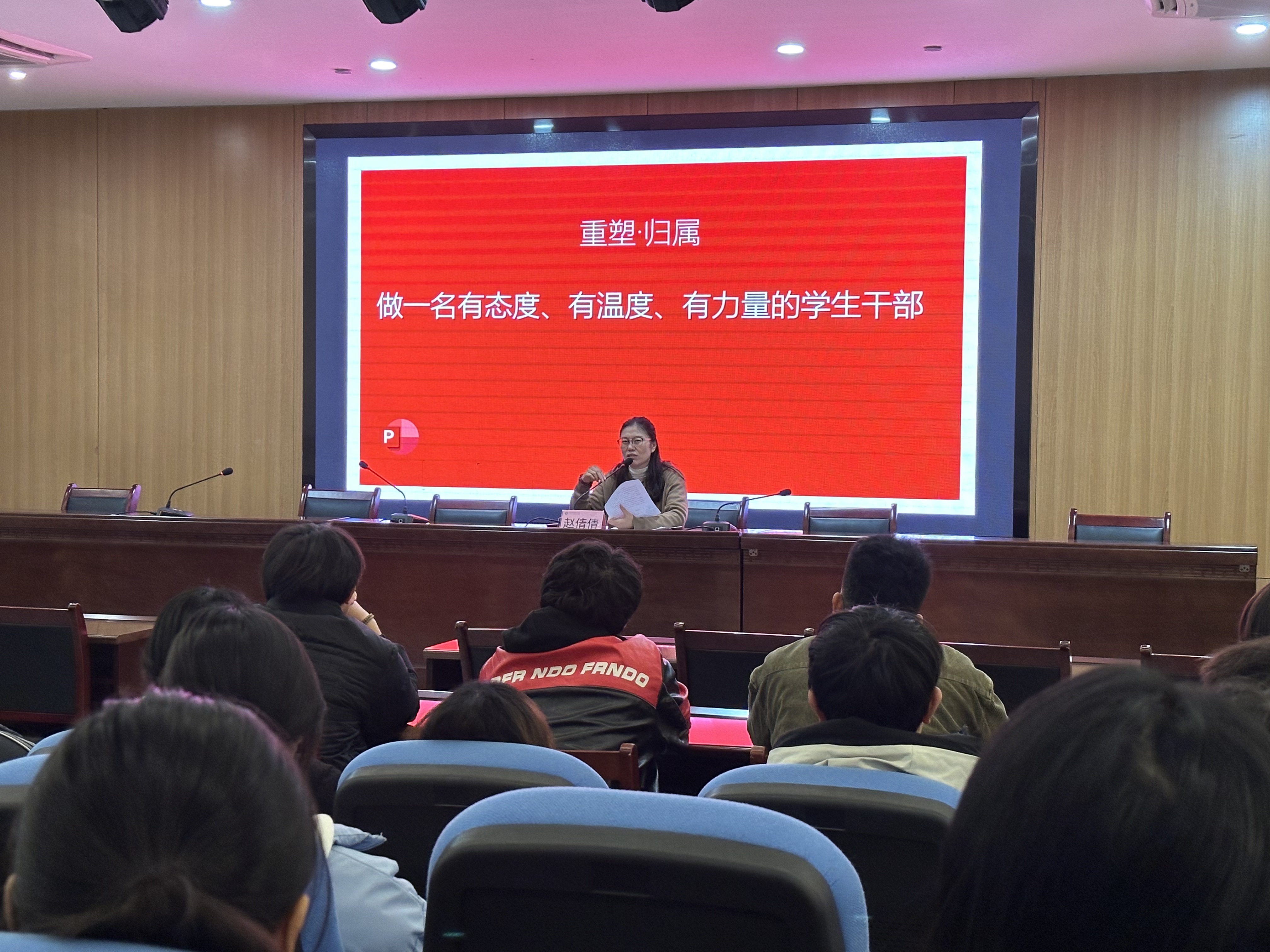 为进一步夯实学生会组织根基,锤炼学生干部的综合素养与服务本领,明晰工作定位与责任担当,11月17日下午,经贸旅游学院团总支在图书馆一楼报告厅举行2025年学生会培训班开班仪式。经贸旅游学院党总支副书记赵倩倩、团总支书记吴明丽、团总支教师兼职副书记周燕、辅导员孙紫娟出席本次仪式。